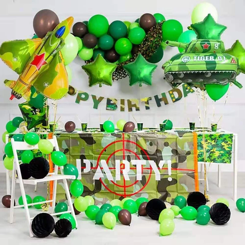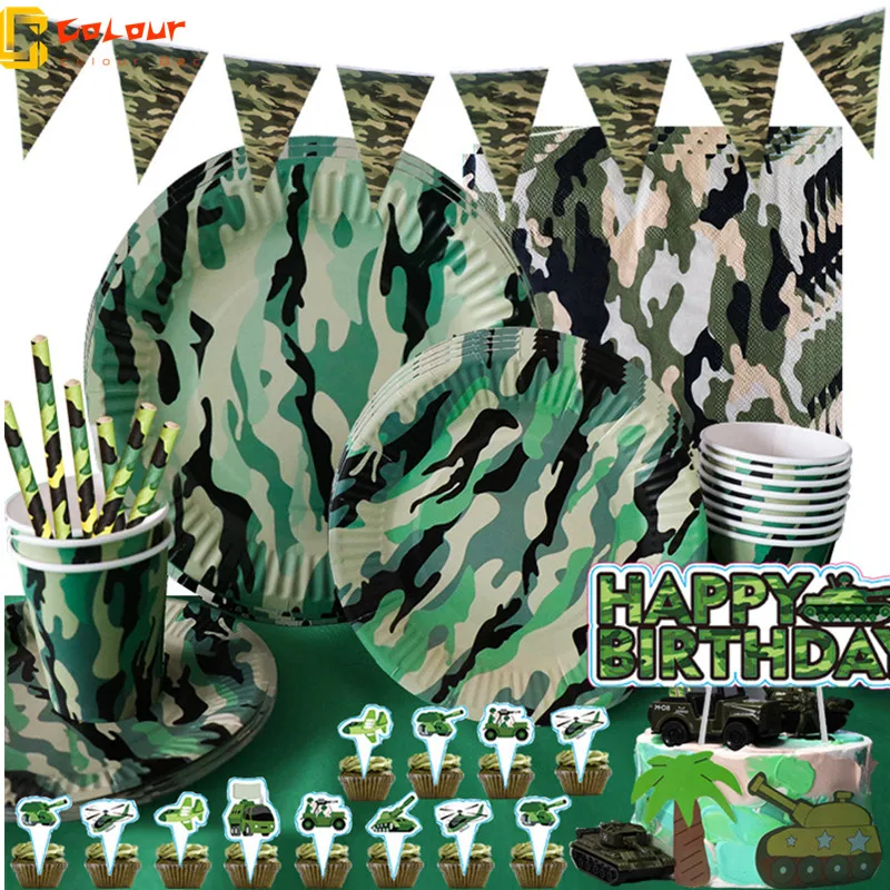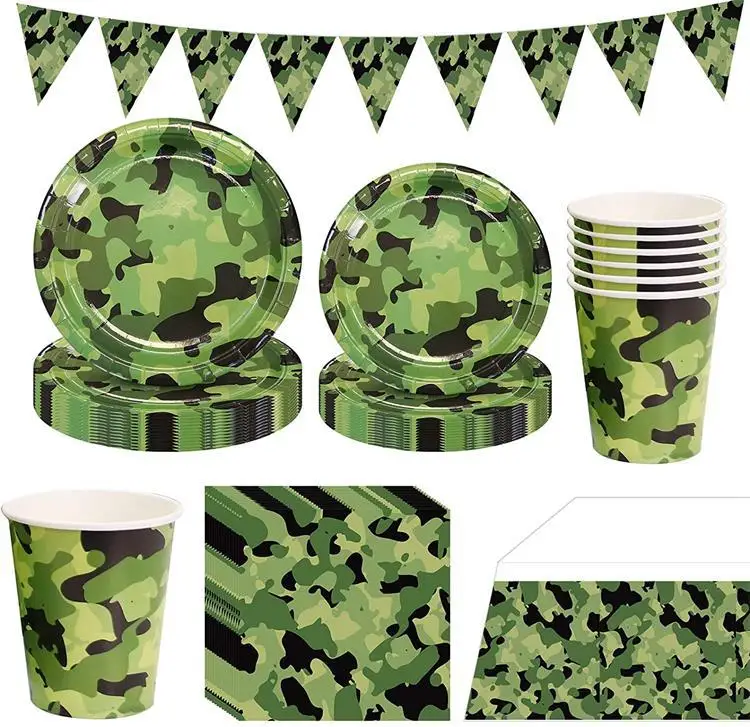 Камуфляжная декоративная бумажная посуда в стиле милитари для вечевечерние, кружки, тарелки, салфетки воздушных шариков для детского дня рождения