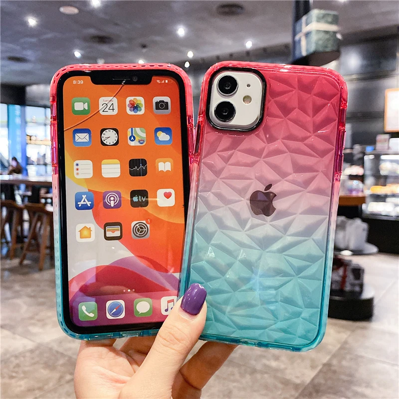 Чехол для iPhone 11 12 Pro Max XS Max, роскошный противоударный чехол с градиентным алмазным узором для iPhone 7 8 Plus 12 Mini X XR SE 2020