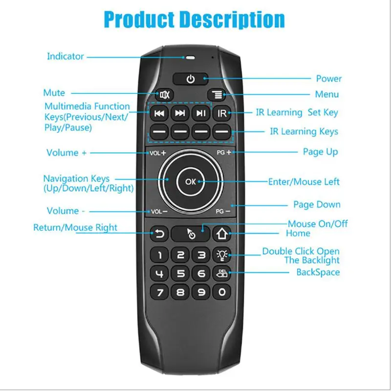 Bluetooth 5,0 мини-клавиатура G7BTS, гироскоп, подсветка, ИК-пульт ...