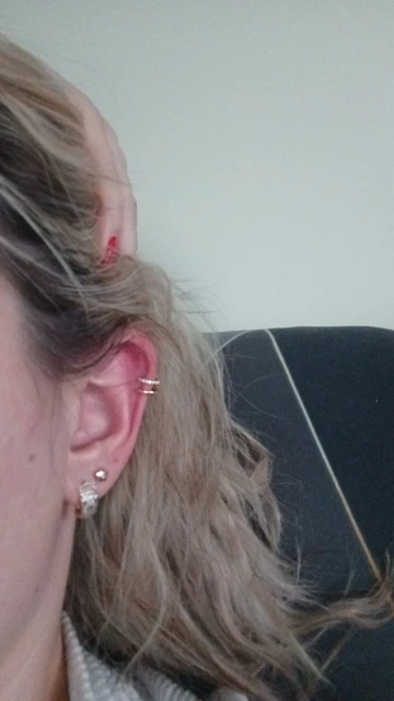 Очень хорошая отделка, они хорошо держатся на моем ухе после небольшого затягивания кольца, слегка нажимая на него.
