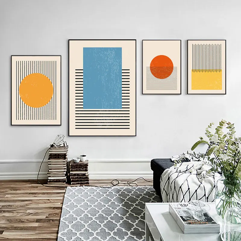 Геометрическая абстрактная картина на холсте в стиле ретро, красочн...