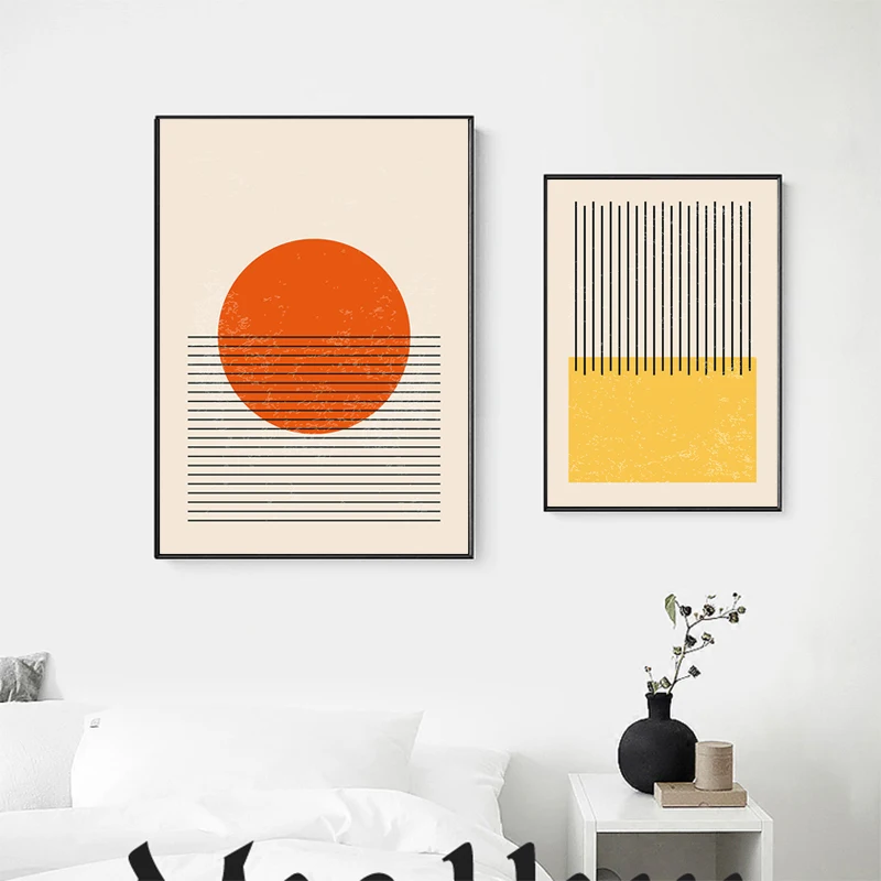 Настенный плакат с абстрактными линиями и принтами, геометрический цветной блок, живопись на холсте, декоративное украшение в скандинавском стиле для гостиной, домашнего декора