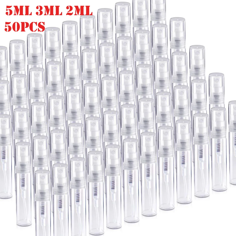 50 шт. x 5 мл3 мл2 мл мини прозрачный пластиковый пустая бутылочка с распылителем милый распылитель духов для чистки, путешествий, эфирных масел, духов