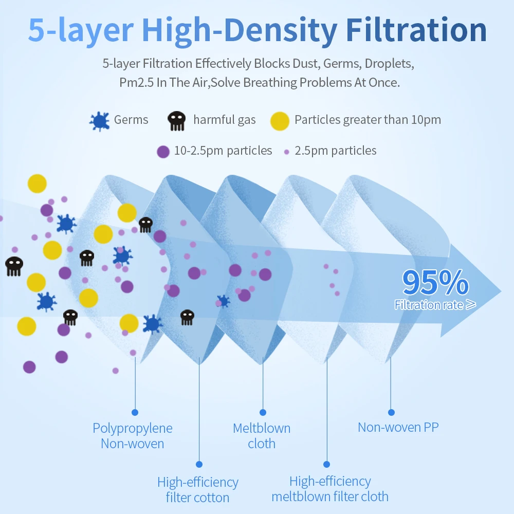 5-100 шт., многоразовые маски для взрослых, 5 слоев