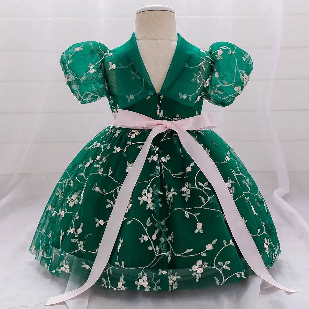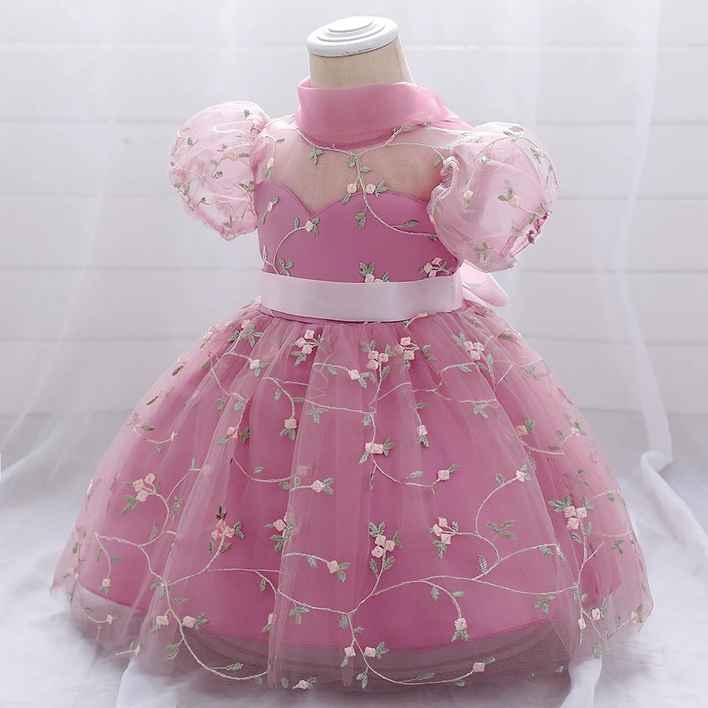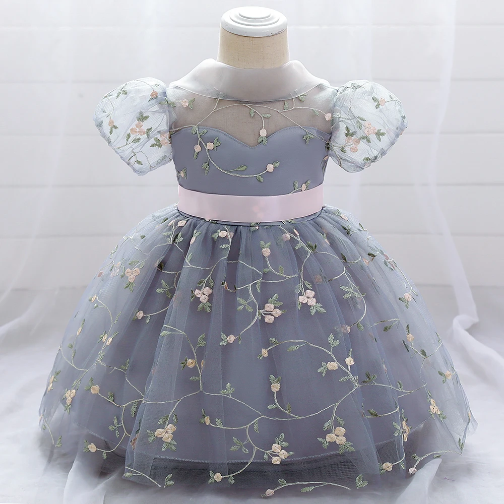 Детское платье с цветочной вышивкой, белое платье для первого дня рождения