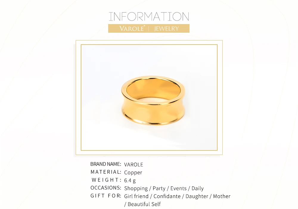 Женское вогнутое кольцо VAROLE, минималистичное золотистое кольцо с...