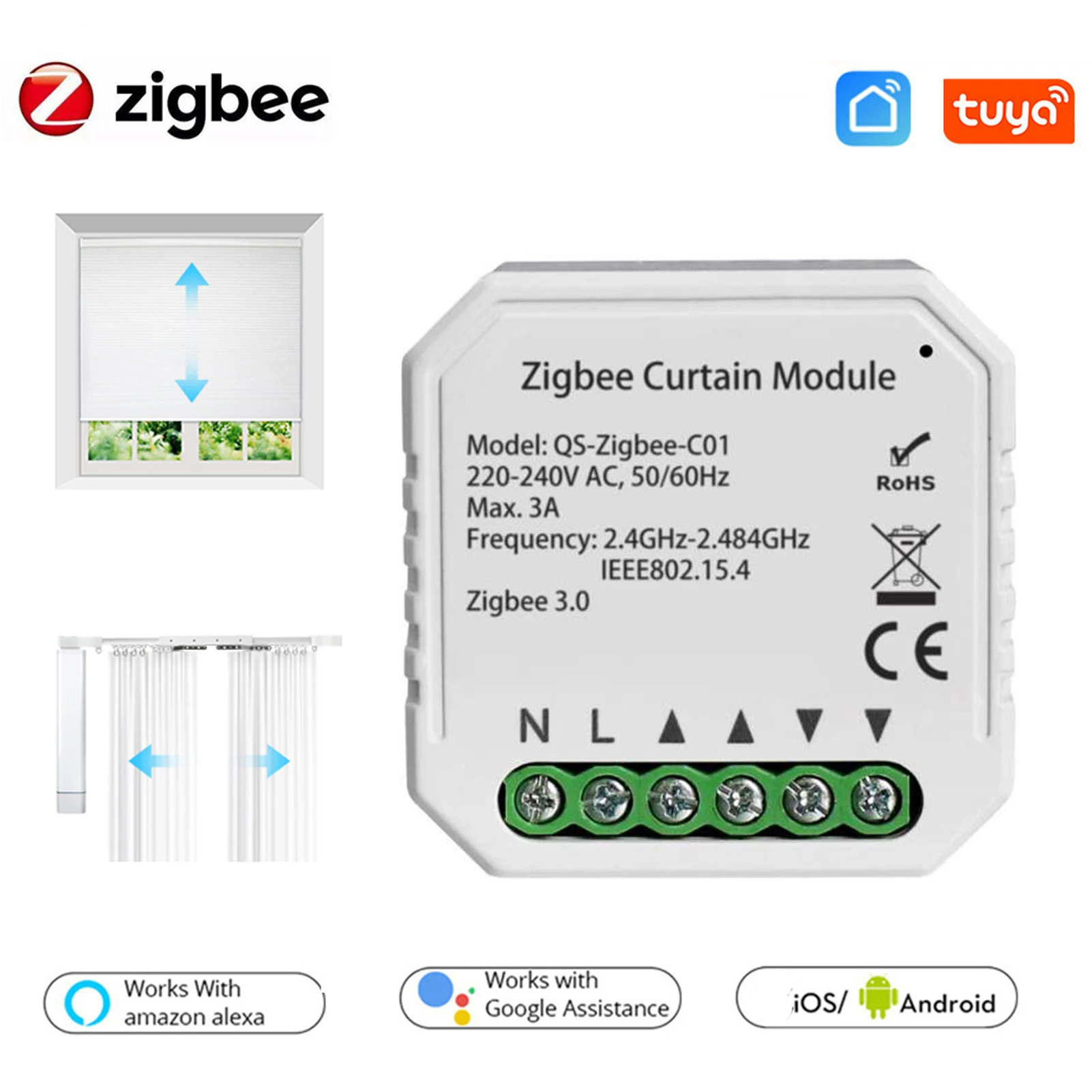 Модуль переключателя для рулонных жалюзи Tuya Smart Life Zigbee, Wi-Fi, с голосовым управлением, подходит для Google Home, Amazon Alexa