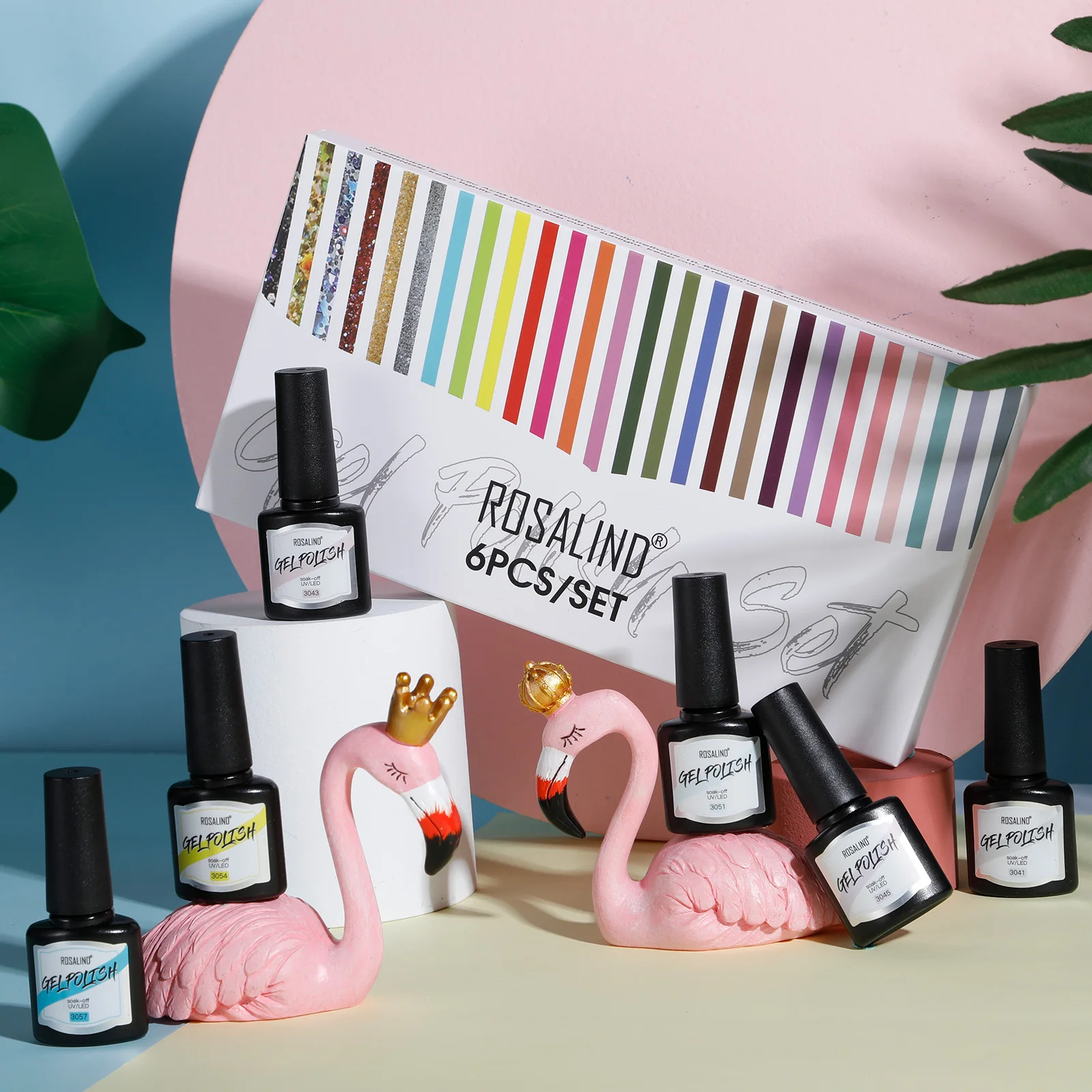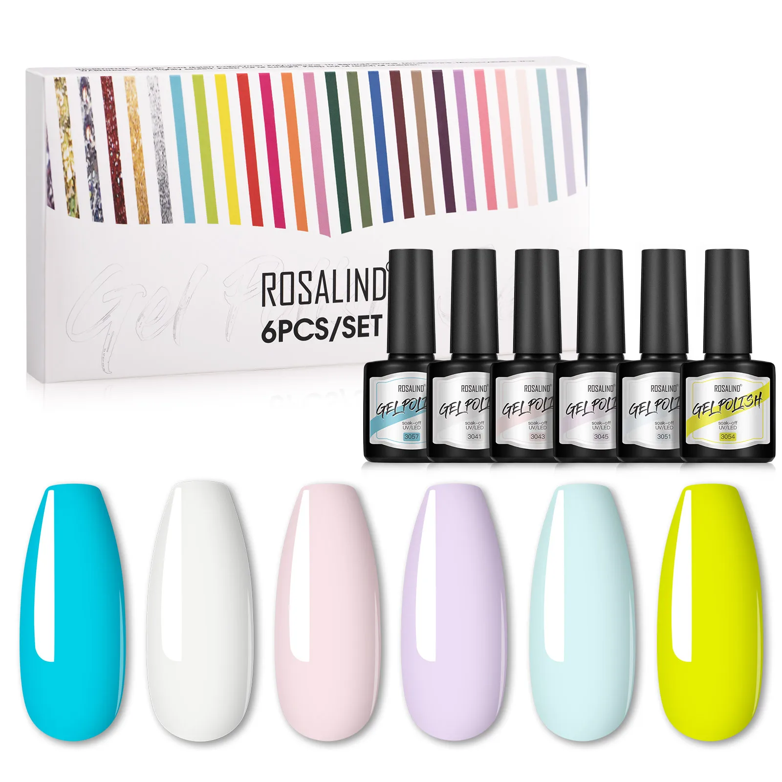 Гель-лак ROSALIND 6 шт.компл. полуперманентные гибридные лаки для дизайна ногтей отмачиваемый гель требуется базовое верхнее покрытие 8 мл чистый цвет для маникюра