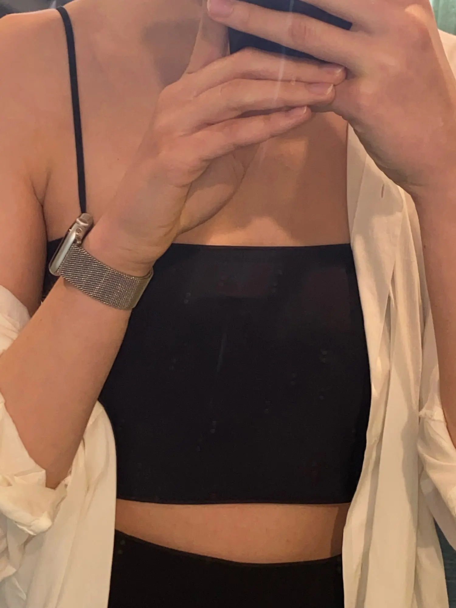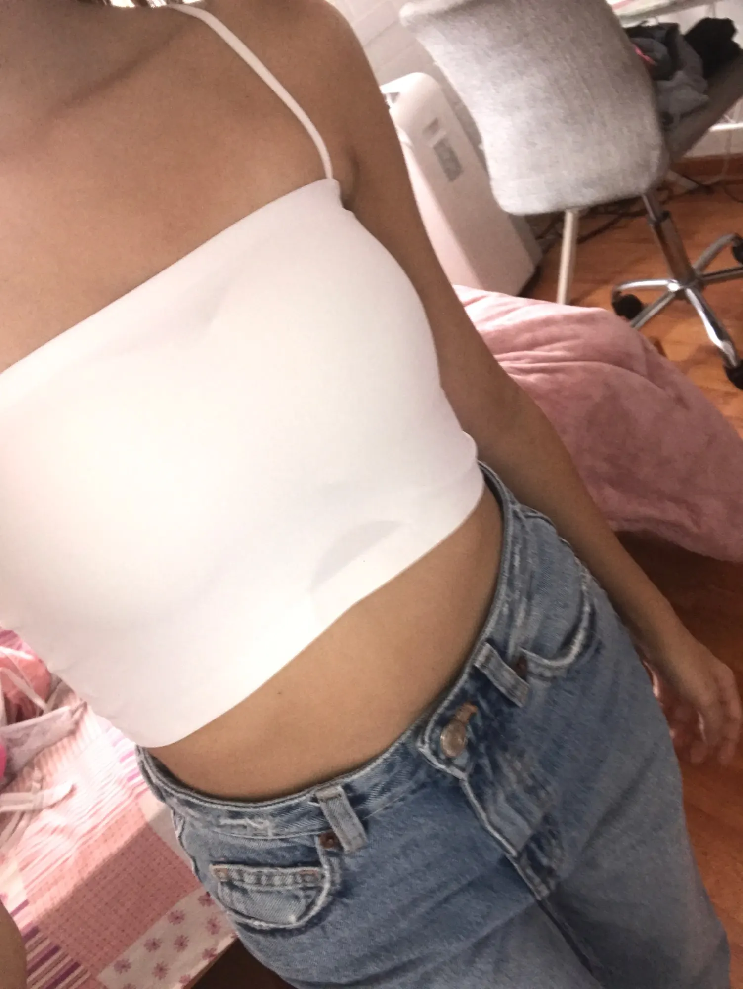 за свои деньги просто класс!! чашки норм, сидит шикарно) снизу немного висит, но мне кажется это только придаёт легкости этому топу. с белой рубашкой носить не получится, топ немного молочнее чем идеально белая рубашка. по размеру все идеально подошло) также снизу видно «отверстие» для чашек, ну сойдёт в общем :) тг: @ksens15