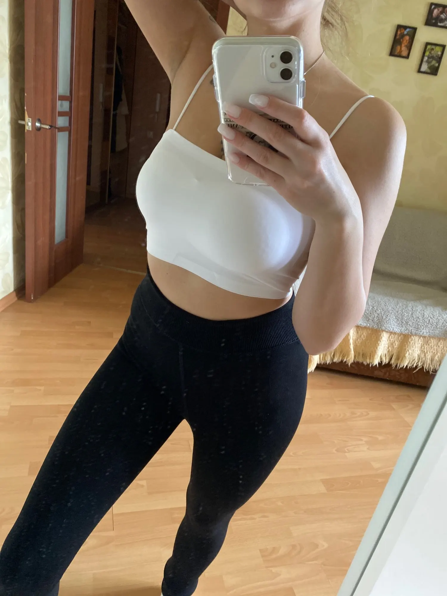 Хороший топ, пришёл на месяц быстрее чем ожидалось, в целом шёл около месяца или меньше. бесшовный, но чашечка немного прогнута в середине (видно на фото), вытаскивается, без неё тоже выглядит прилично всё и даже лучше, чем с ней. Лотом будет скорее всего жарко, но это ожидалось, так как ткань не натуральная, конечно