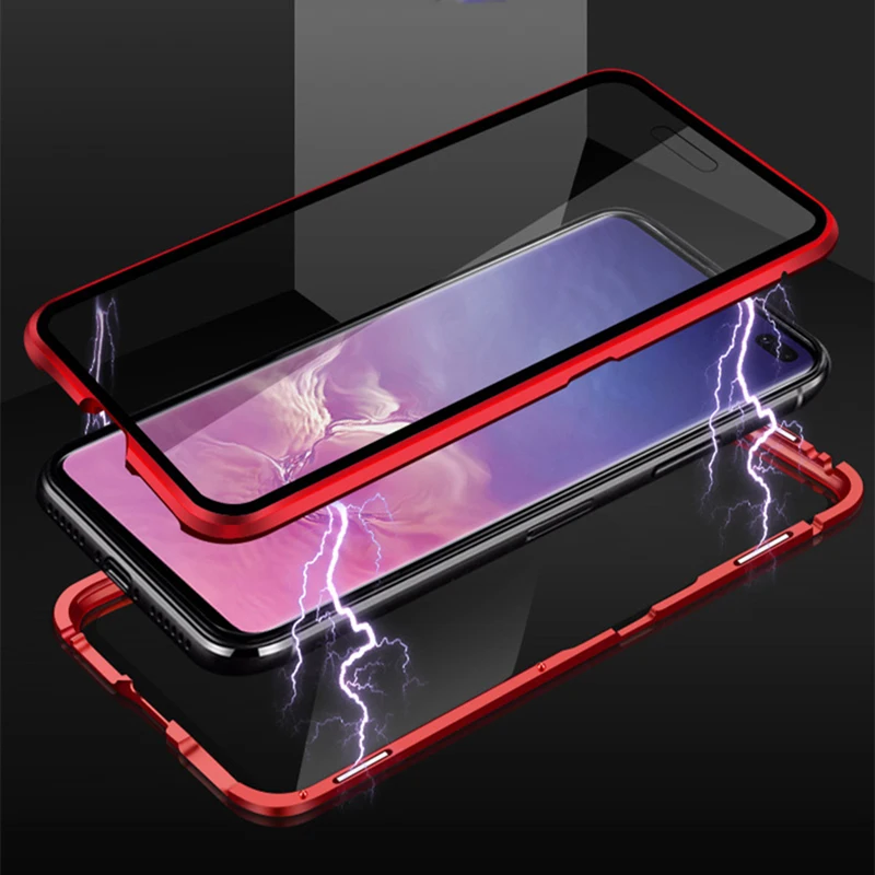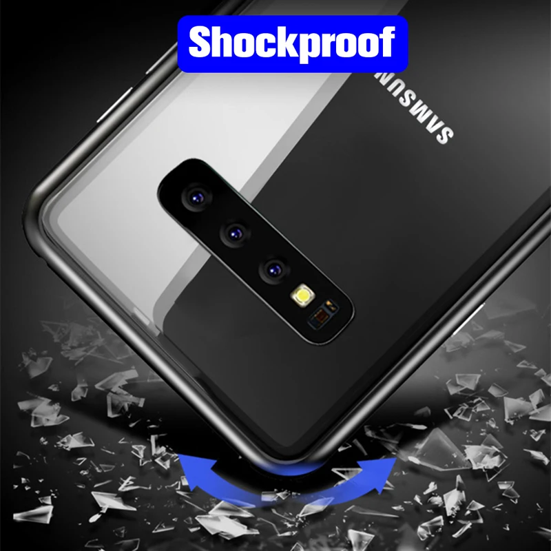 Магнитный металлический защитный чехол 360 подходит для Samsung Galaxy S20fe A50 M51 A40 A31 S8 9 10E A71, двухстороннее закаленное стекло