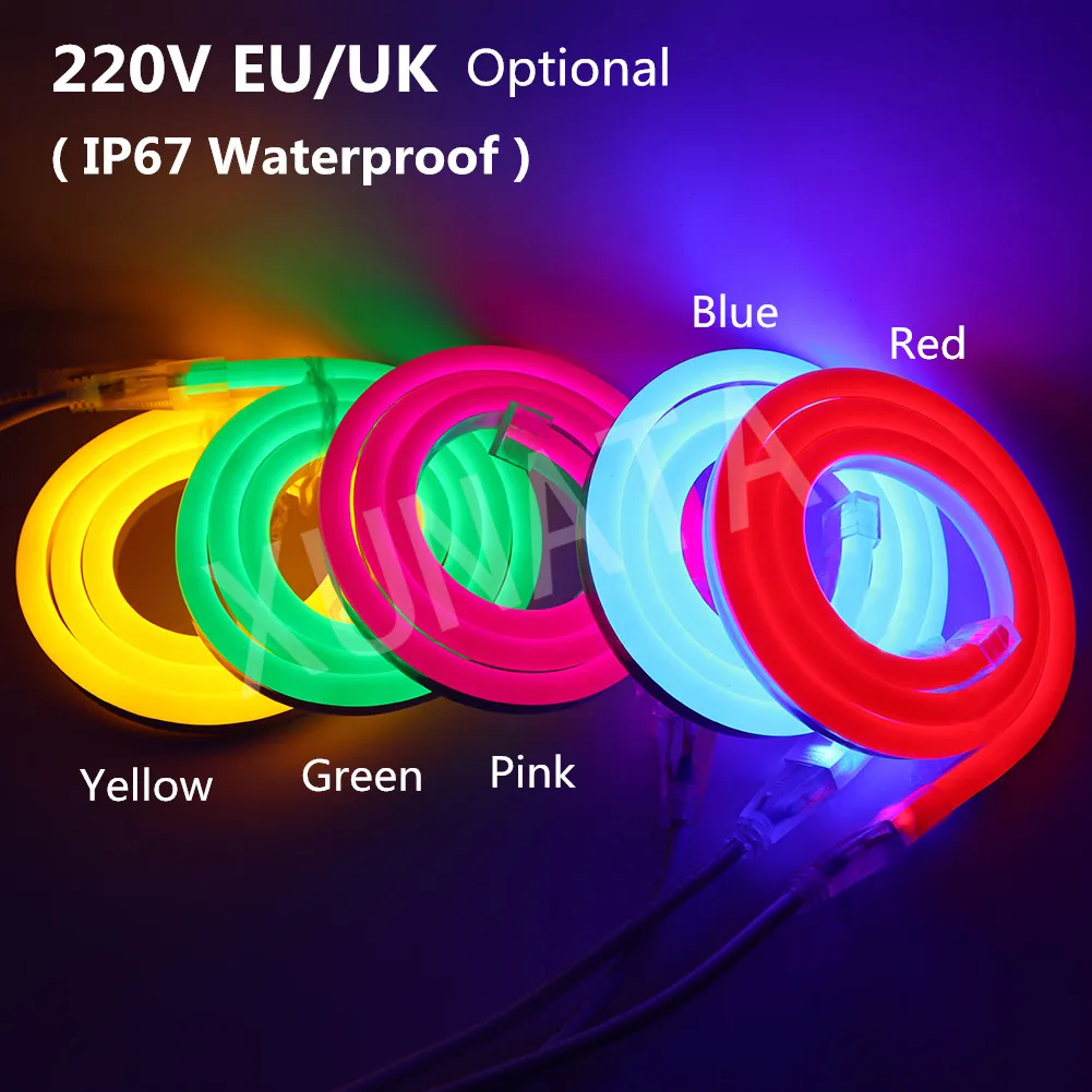 Гибкая неоновая светодиодная ленсветильник, 220 В, 5050 RGB, IP67, 120 светодиодовм, 2835, белыйсинийкрасныйзеленыйжелтый