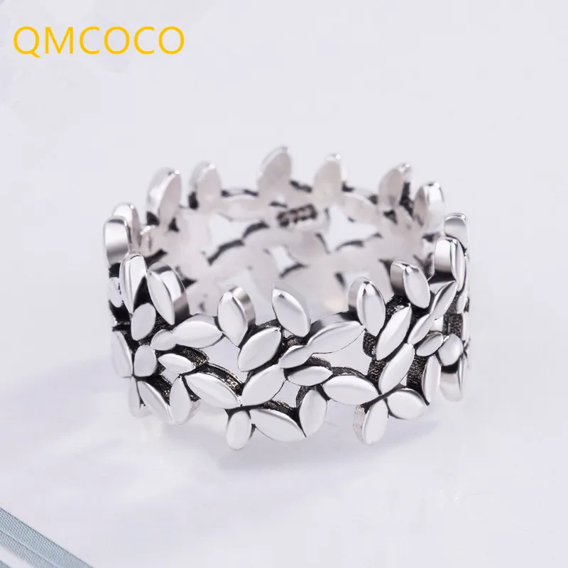 QMCOCO винтажные Серебряные стильные кольца в форме листа для женщин модные ювелирные изделия открытое регулируемое кольцо на палец для девочек Подарки Вечерние