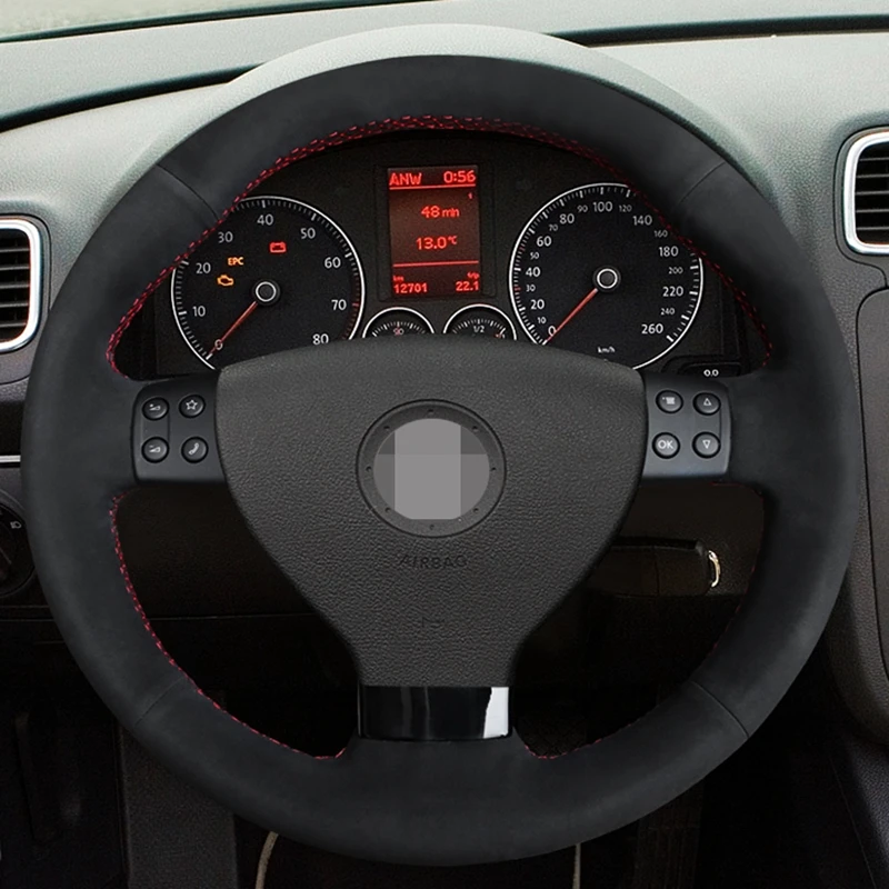 DIY ручной работы чехол рулевого колеса автомобиля черная замша кра...