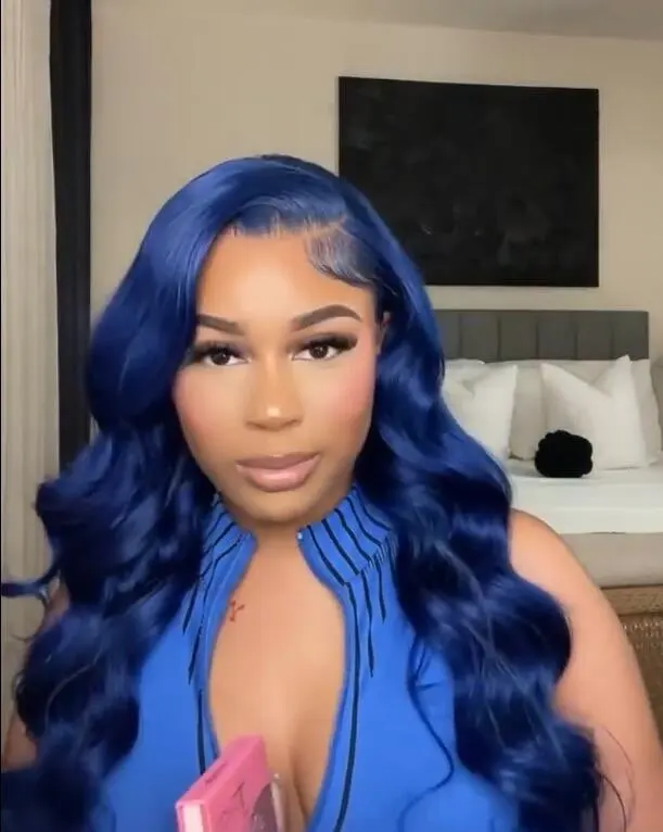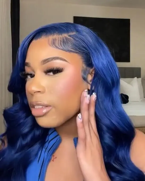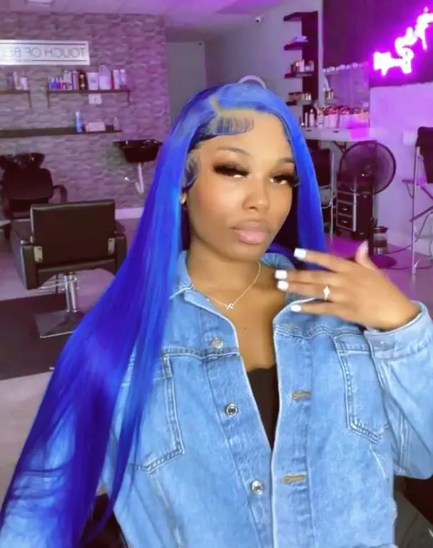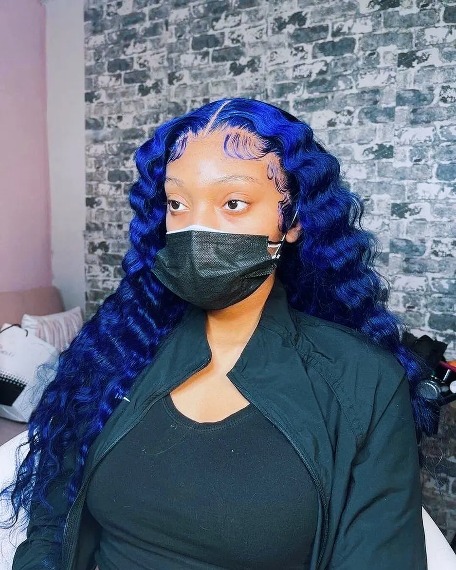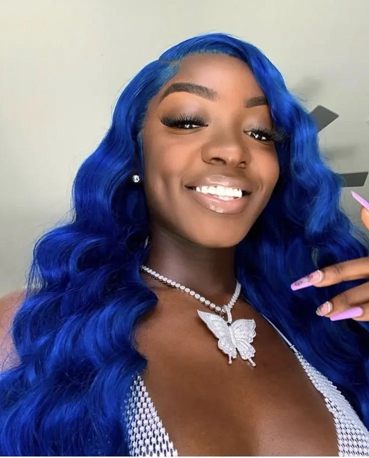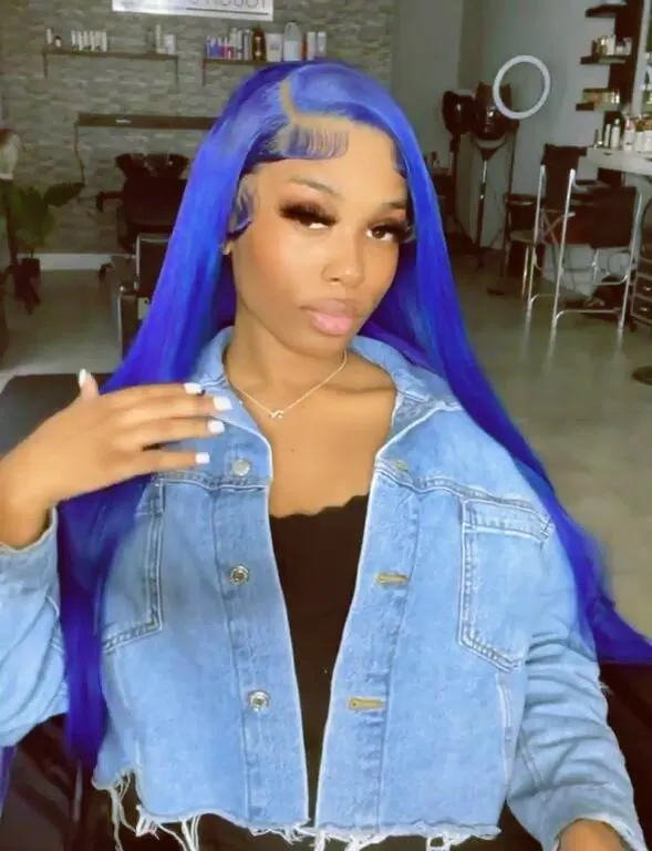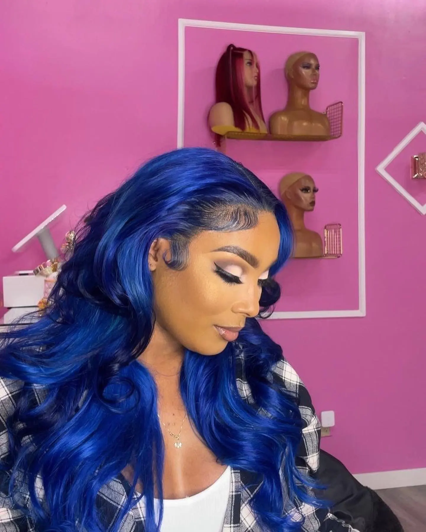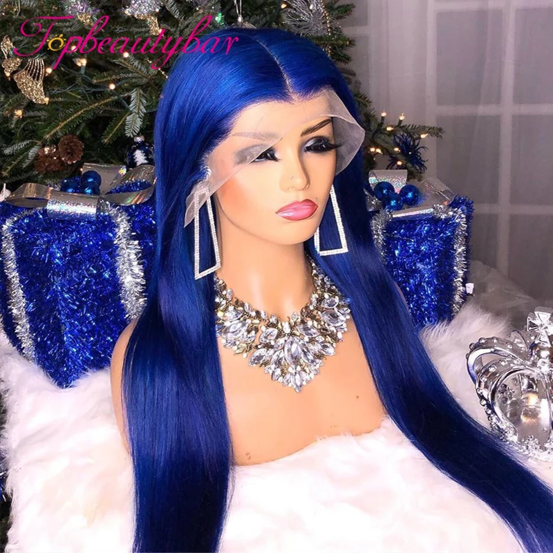 Синий цвет, волнистыепрямые 13X 4 парики на сетке спереди, бразильские цветные синие человеческие волосы, парики для женщин, предварительно выщипанные парики на сетке Remy