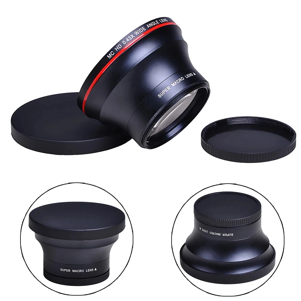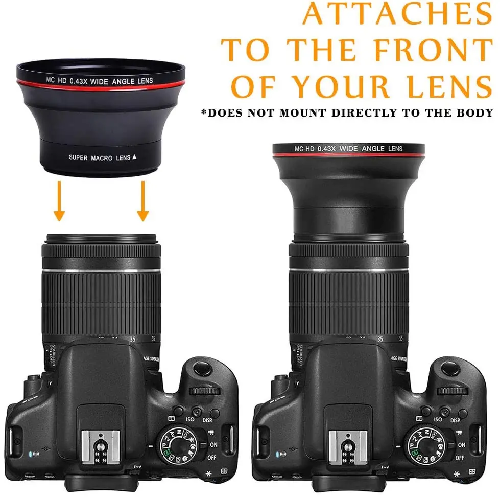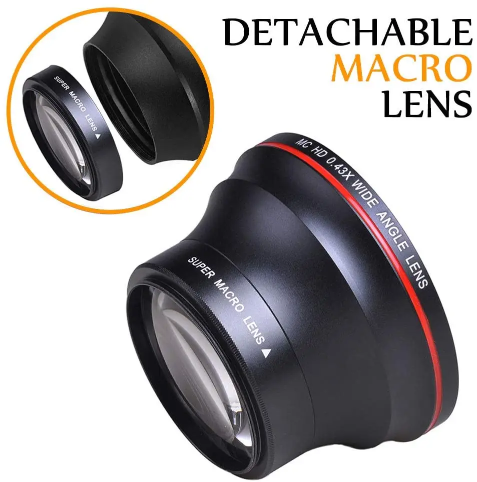 1 шт. широкоугольный объектив 55 мм 0.43x с макросъемкой для камер Nikon D3400, D5600 и Sony Alpha