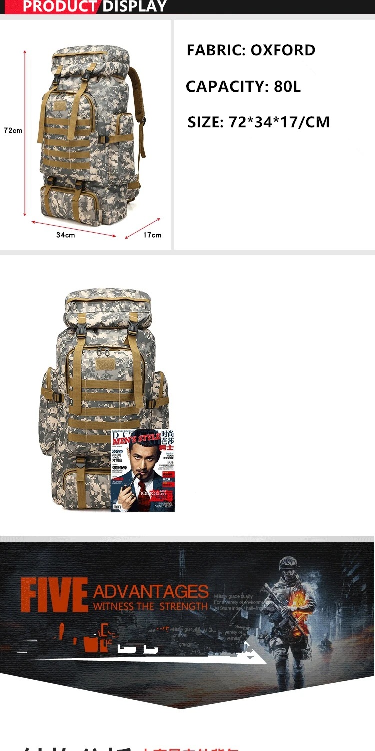 80 л уличные военные рюкзаки, ткань Оксфорд, водонепроницаемый такт...