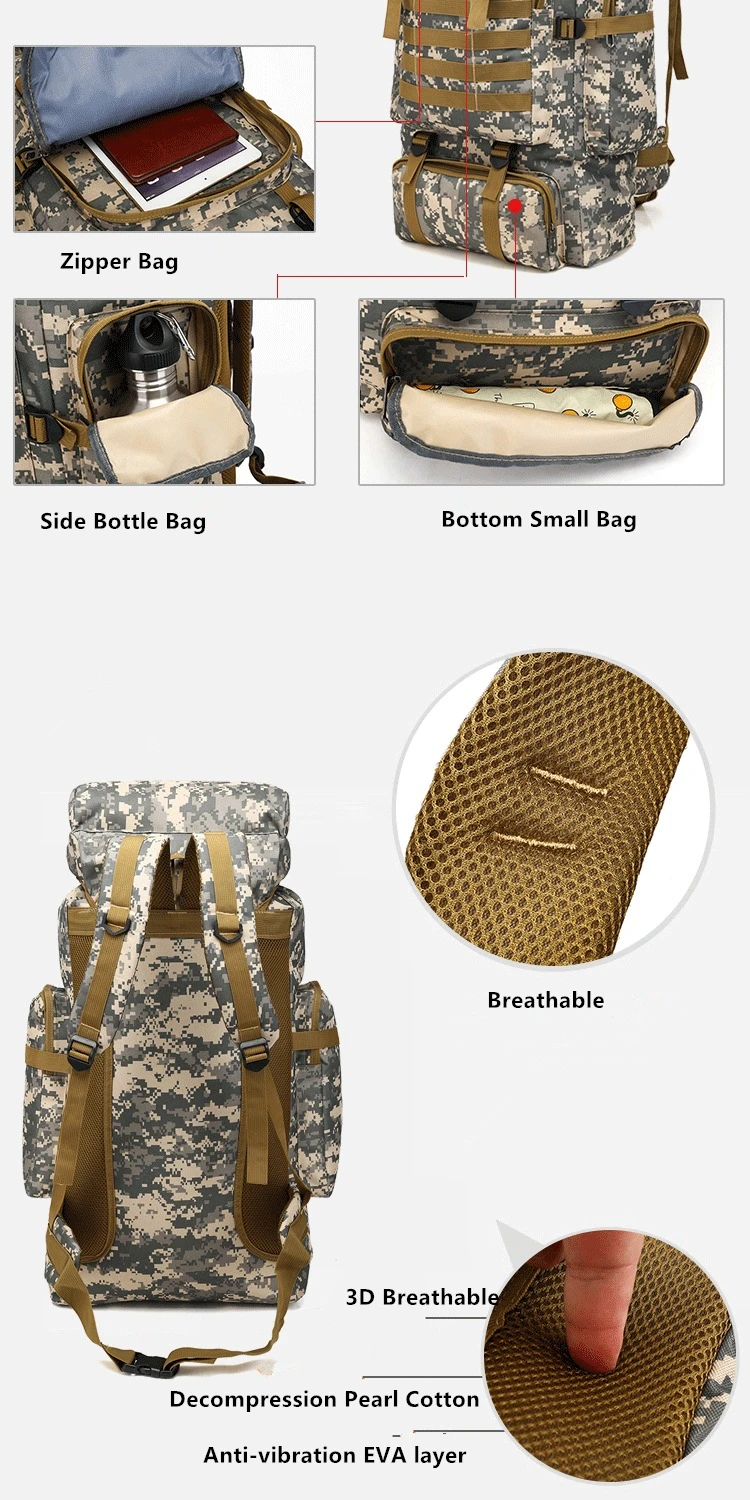 Рюкзак уличный Камуфляжный 70 л тактический рюкзак сумка для альпин...
