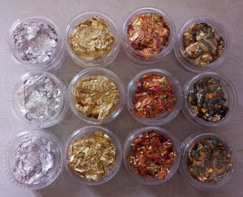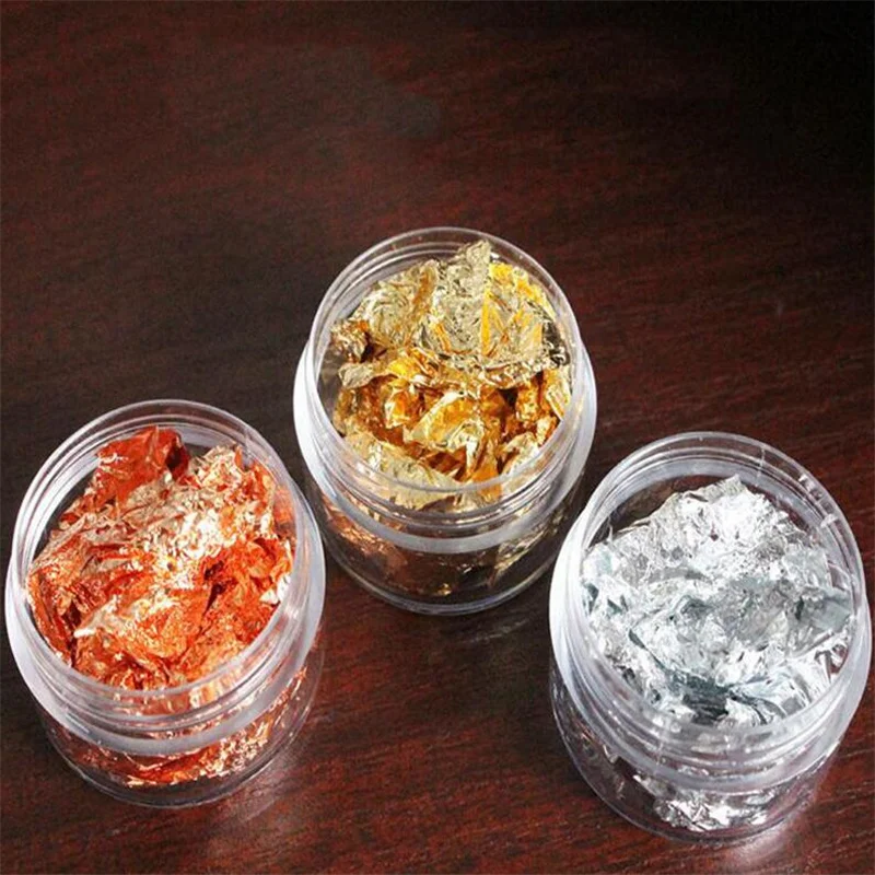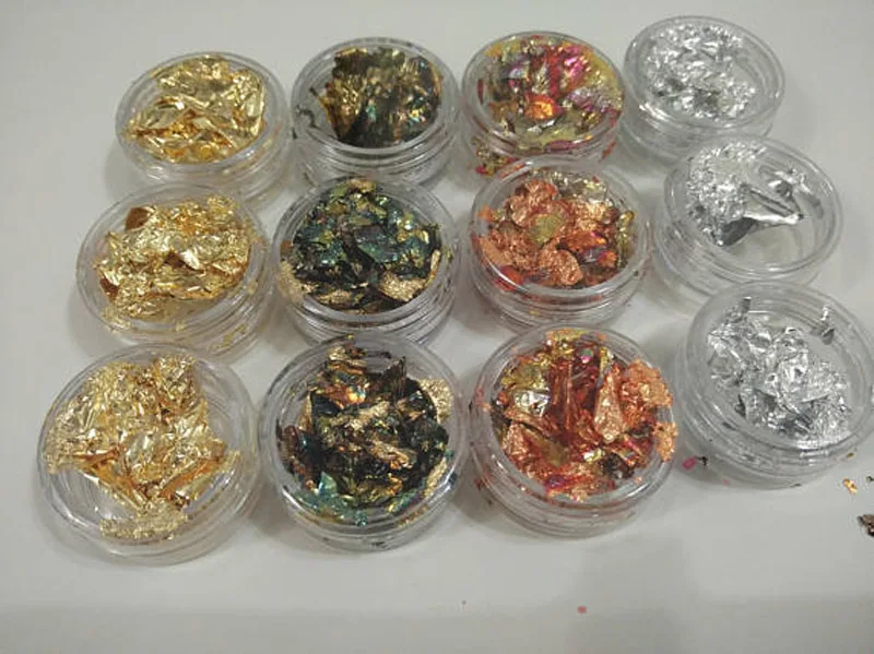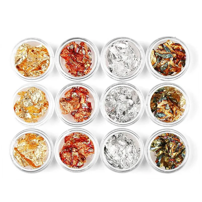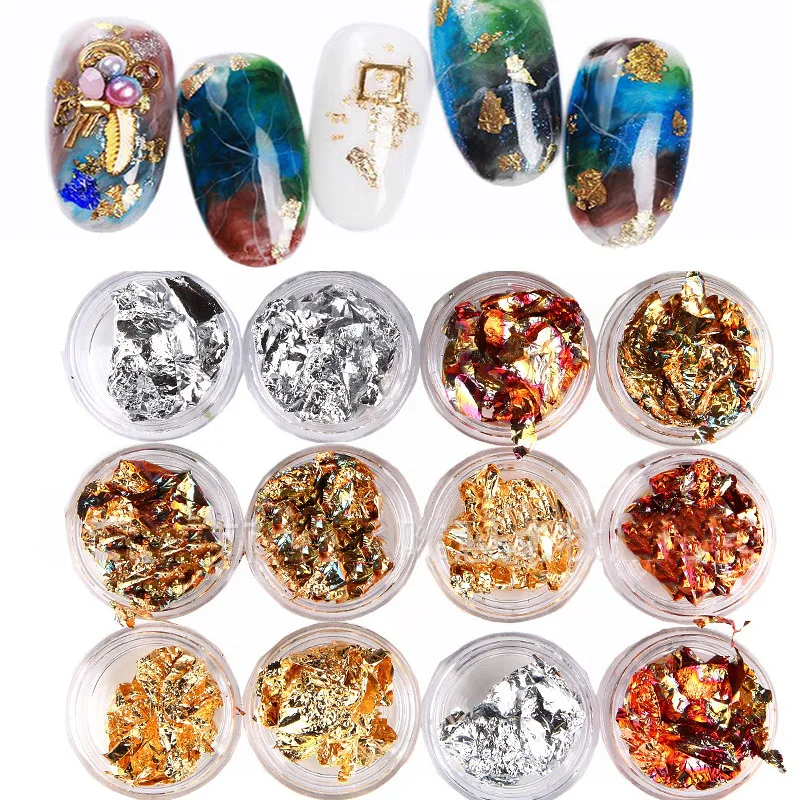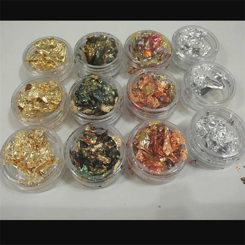 12 банокнабор металлическая Золотая фольга для ногтей платиновая наклейка золотосеребро россыпью Блеск УФ-Гель-лак голографические хлопья лазерные наклейки аксессуары 98%