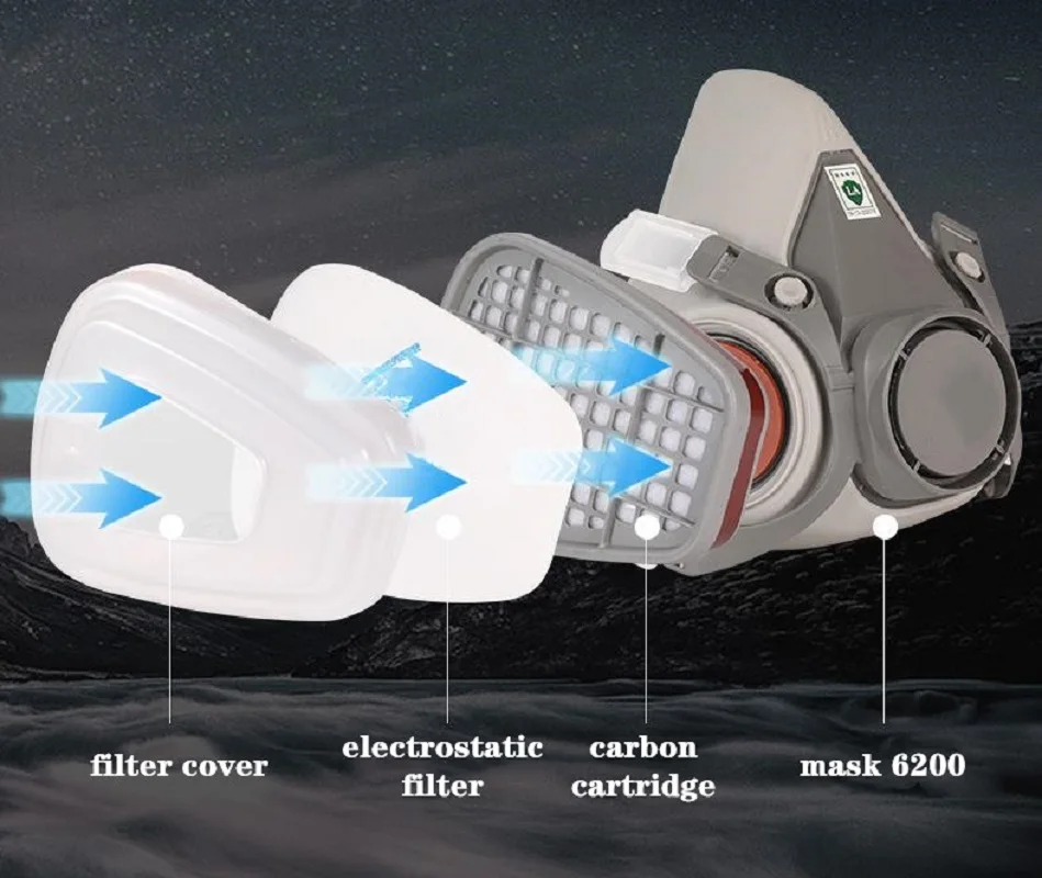 8 в 1 комплект посылка: 1x6200 маска + 2x6001 фильтрующий картридж + 2x501 крышка фильтра + 12x5N11 хлопковые фильтры + защитные очки
