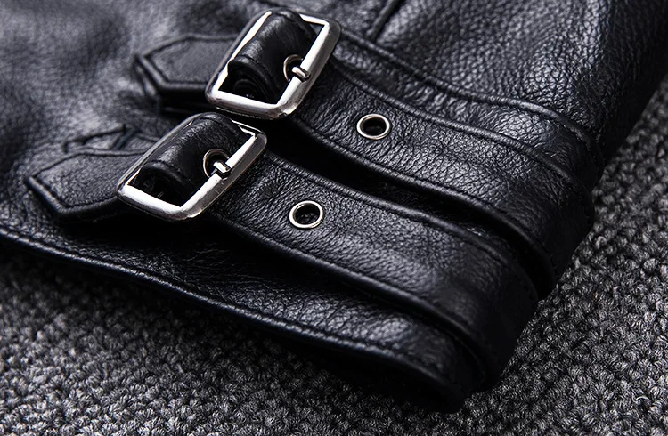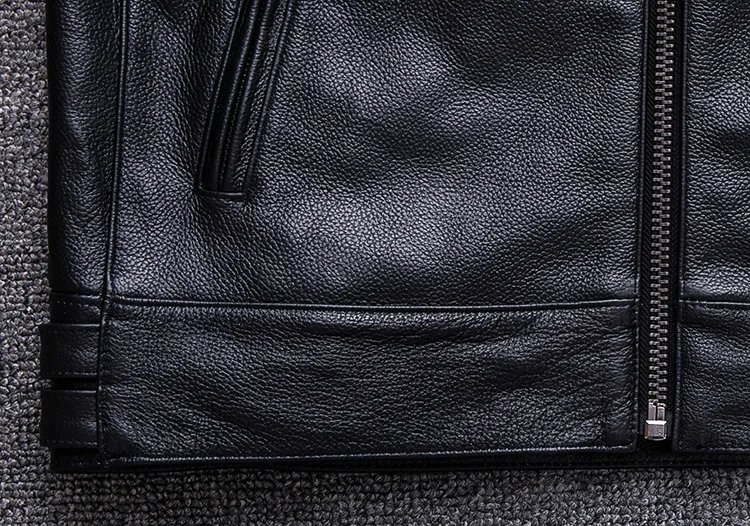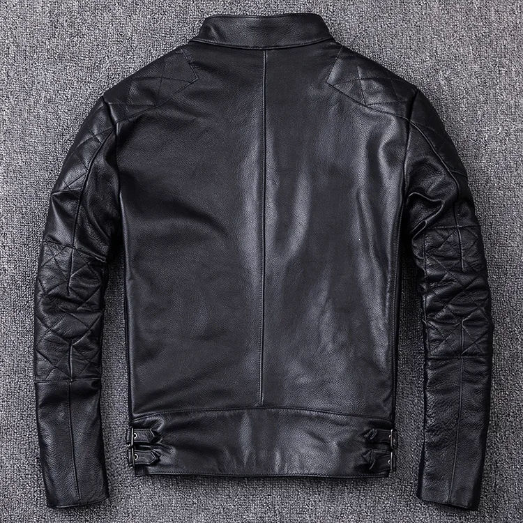 Мужская короткая мотоциклетная куртка из натуральной воловьей кожи