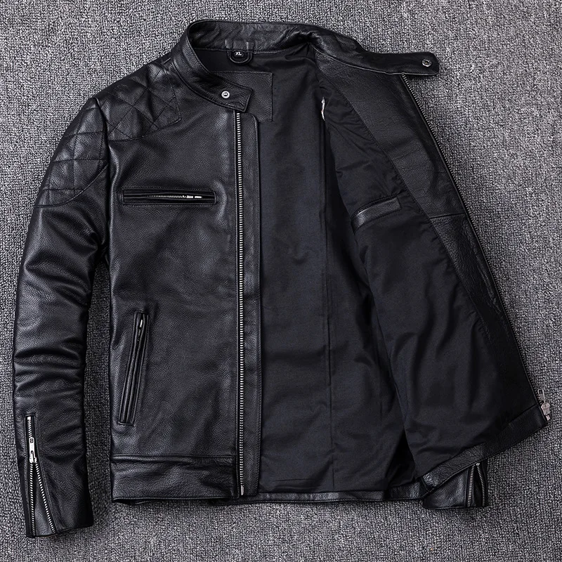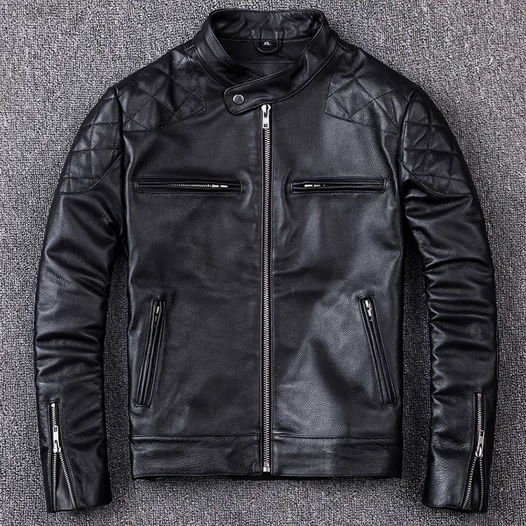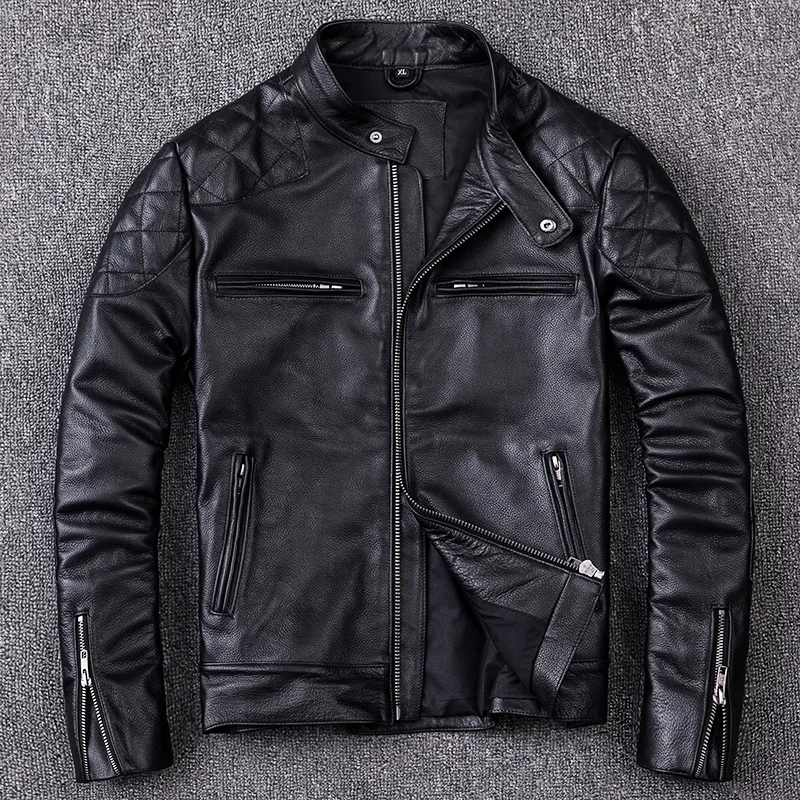 Мужская мотоциклетная куртка из натуральной воловьей кожи, Черная байкерская куртка из натуральной кожи, 2021