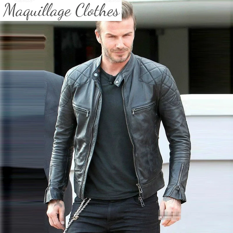 Мужская мотоциклетная куртка из натуральной кожи Дэвида Бекхэма, че...