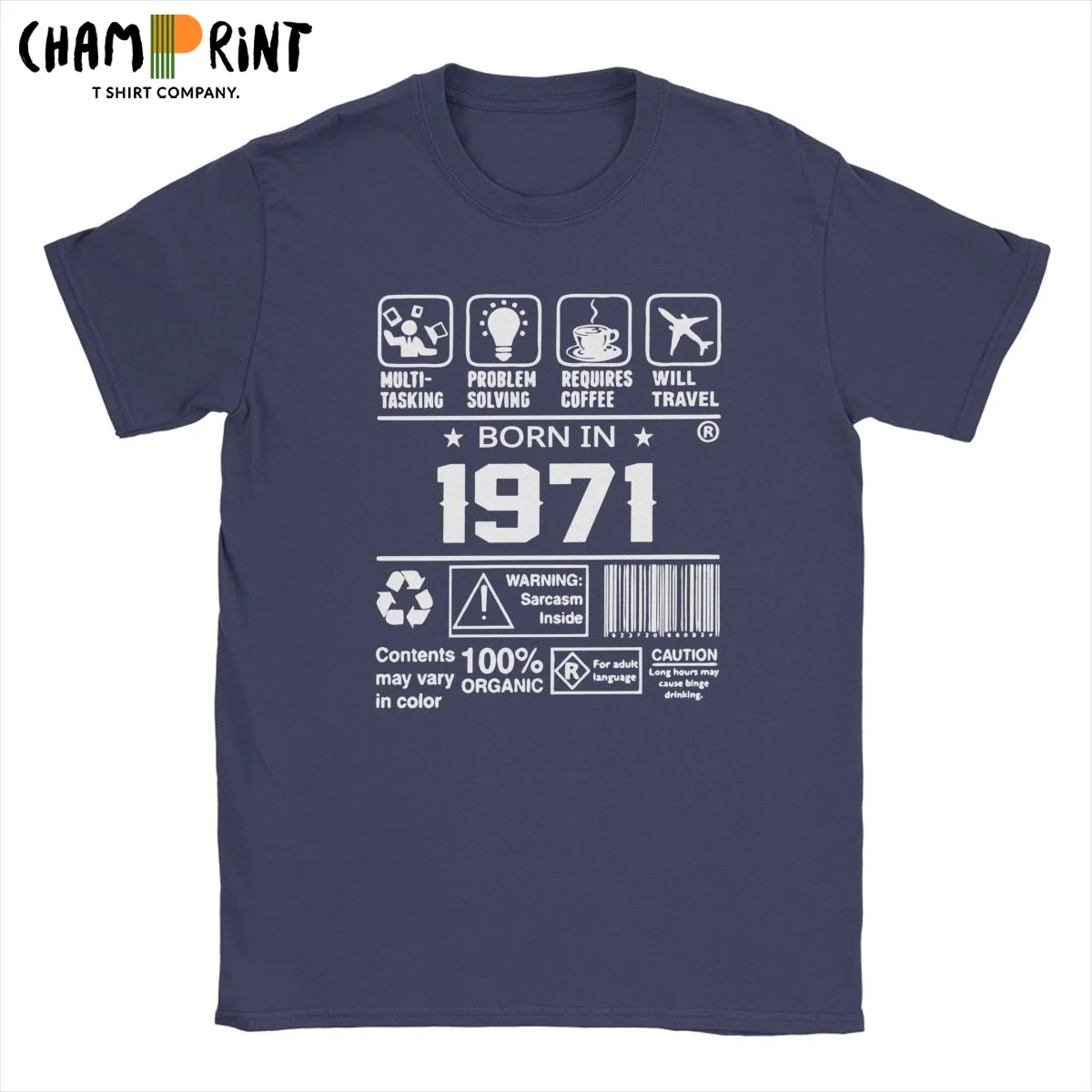 Мужские футболки, повседневные футболки с коротким рукавом, круглым вырезом, 1971 хлопок, 100%, праздновечерние дня рождения, размера плюс
