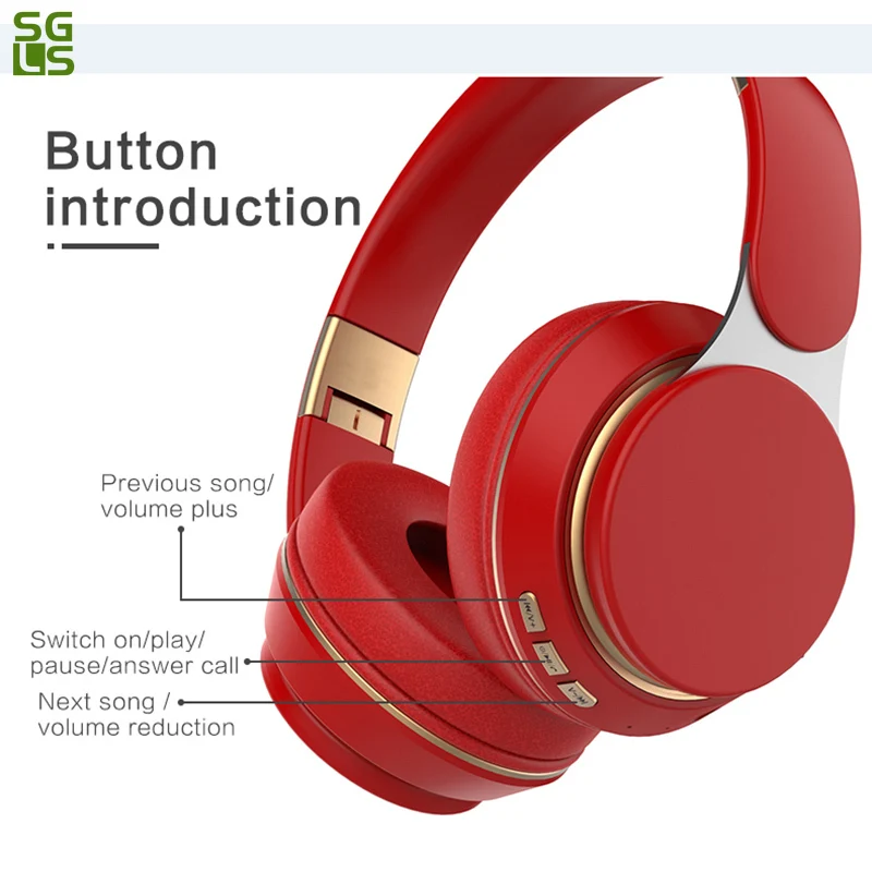 Беспроводная гарнитура Red T7 Bluetooth 5,0, складные стереонаушники с микрофоном для телефона Xiaomi Huawei Pc TVОсобенности: