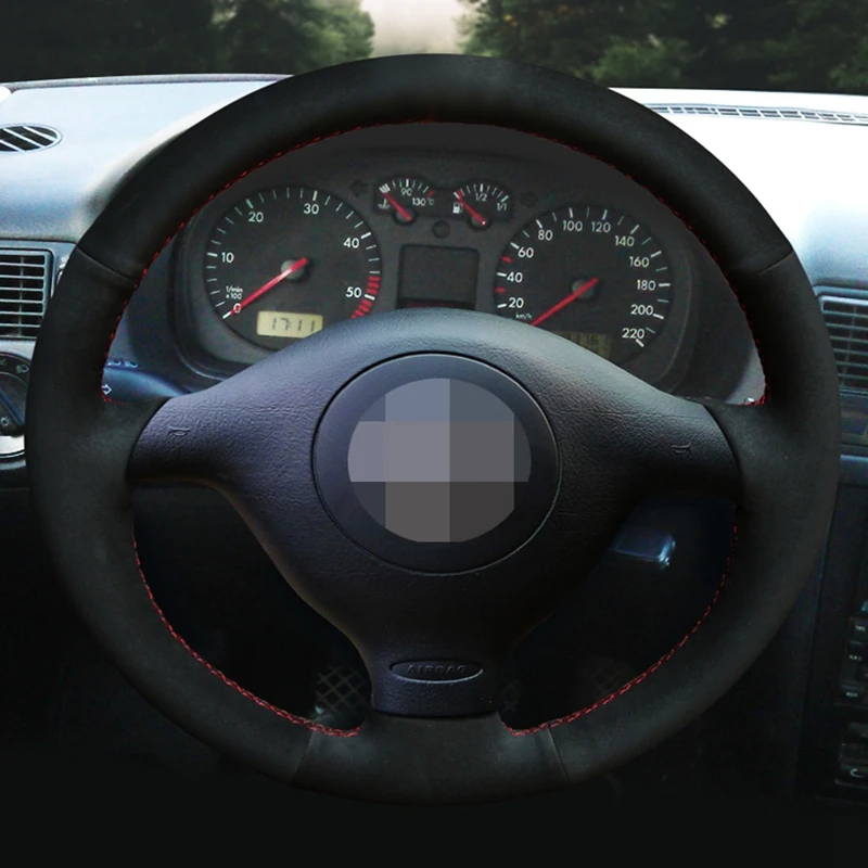 DIY ручной работы чехол рулевого колеса автомобиля черная замша кра...