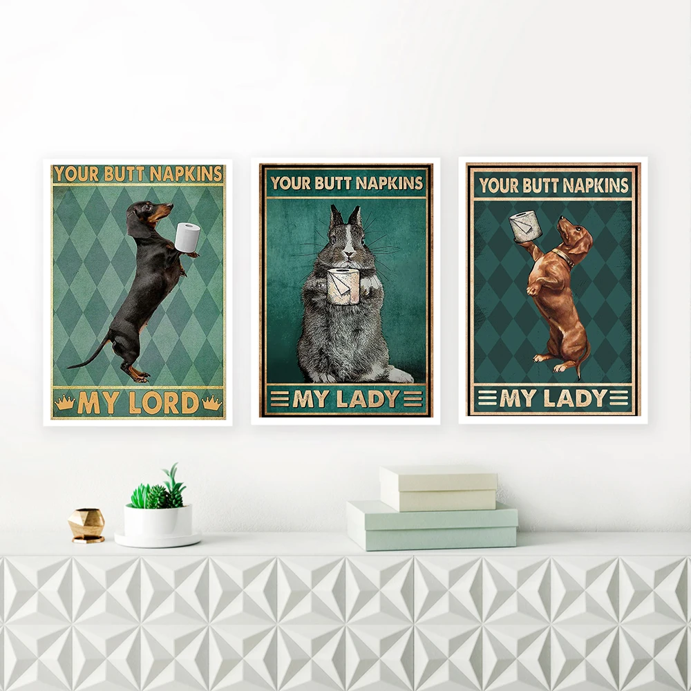 Животное с туалетной бумагой салфетки My Lady сатин портретный Плакат Металлический Ретро винтажный жестяной знак Настенный декор ванной комнаты постер