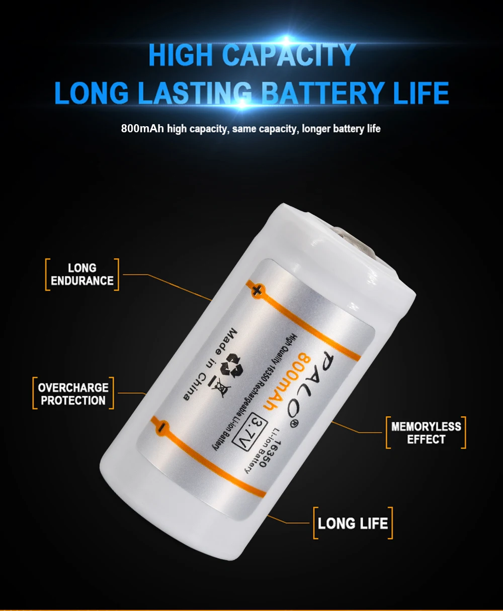 Литий-ионный аккумулятор PALO CR123A, перезаряжаемые батареи 3,7, 800 в, 16350 мАч, 16340, 16350, для светодиодный Ной ручки, светодиодного фонарика