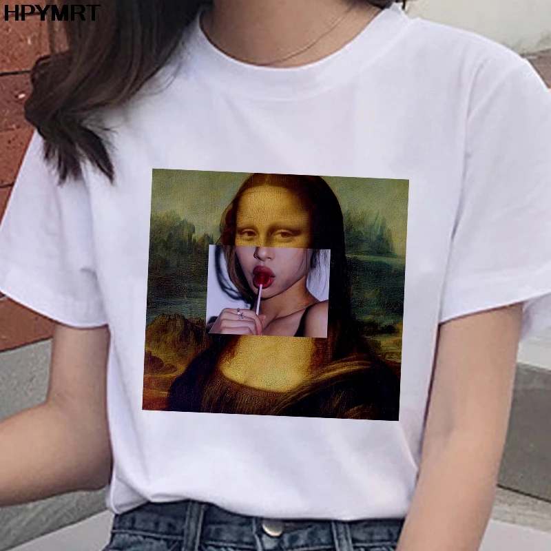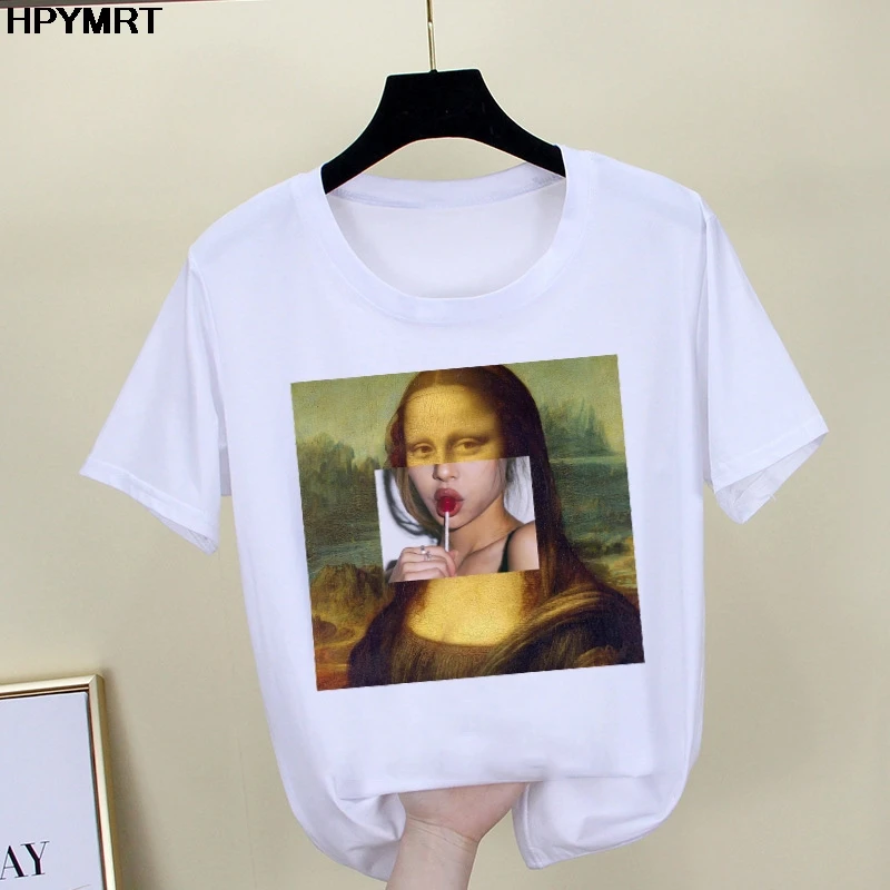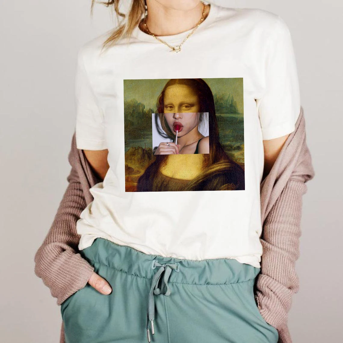 Футболка женская летняя с принтом Моны Лизы, эстетичная забавная Повседневная рубашка с коротким рукавом, уличная одежда