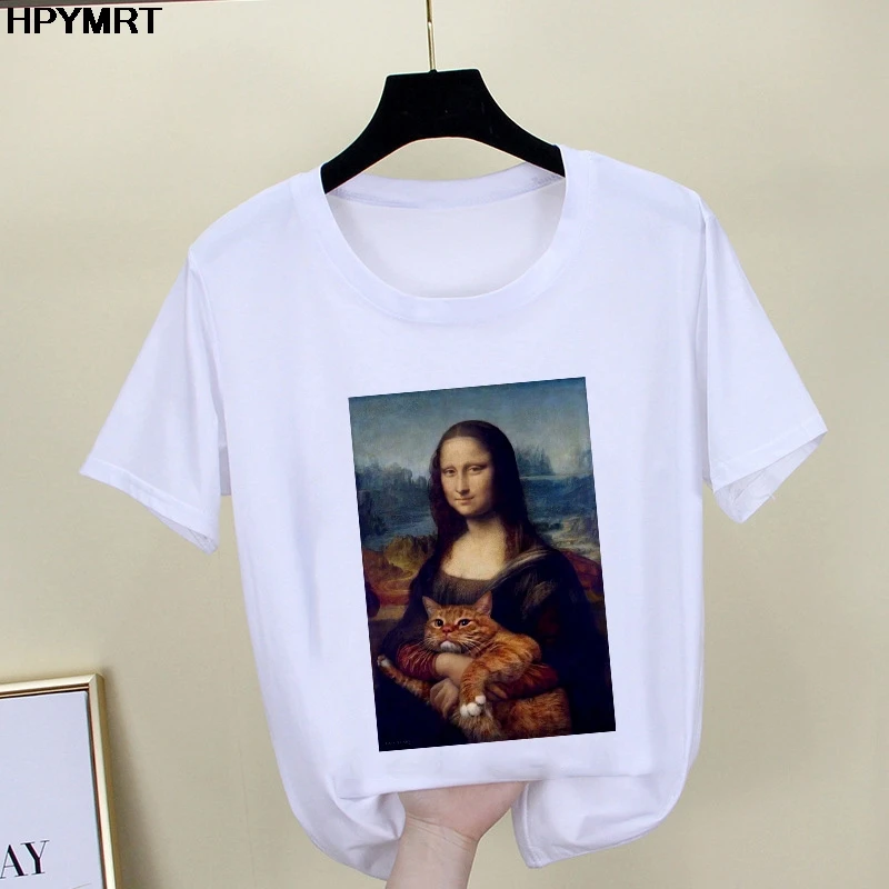 2020 новые летние футболки с принтом Моны Лизы, женские Забавные фу...