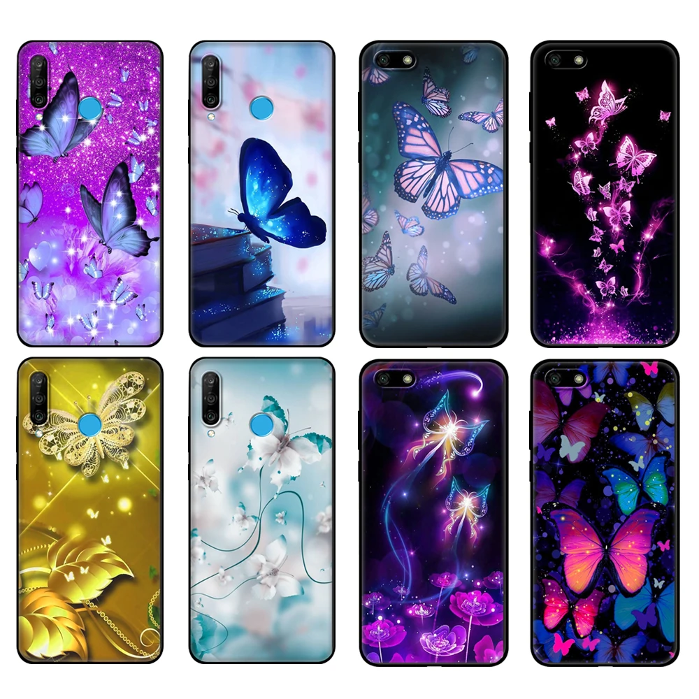 Черный чехол из ТПУ для Huawei Honor 20 Lite 10 10i 20S 30S 30, чехол для Honor 7A 5,45 7s 7C 5,7, чехол с красивой бабочкой