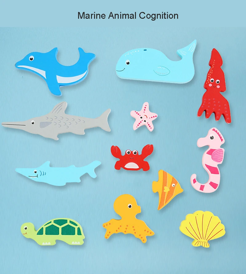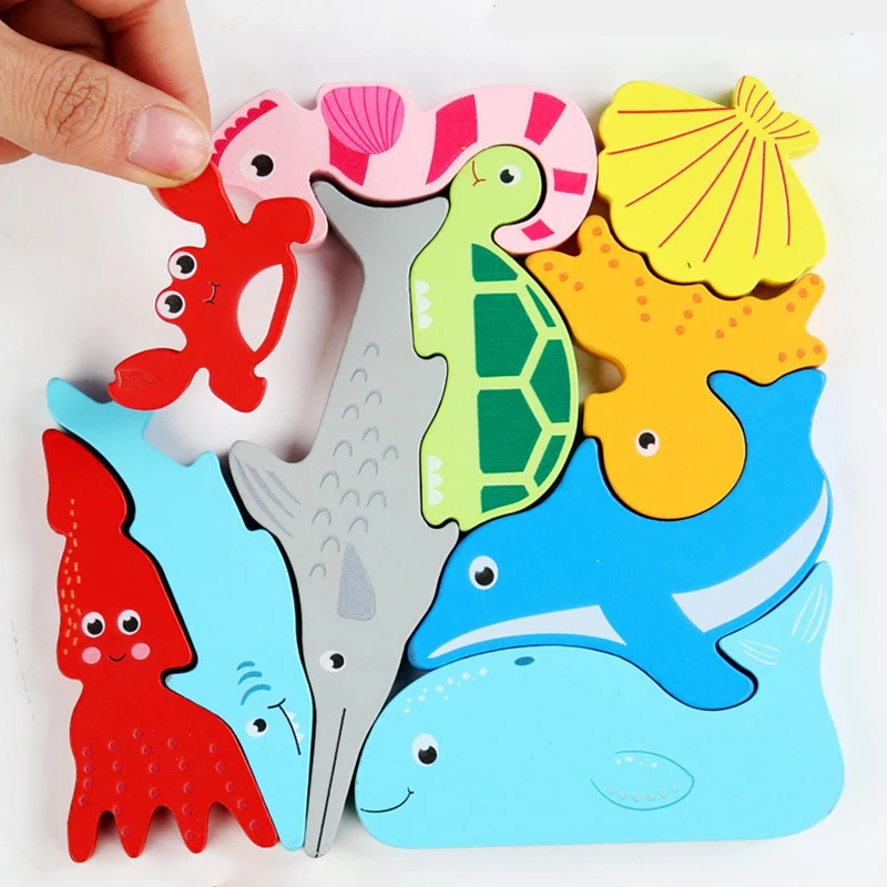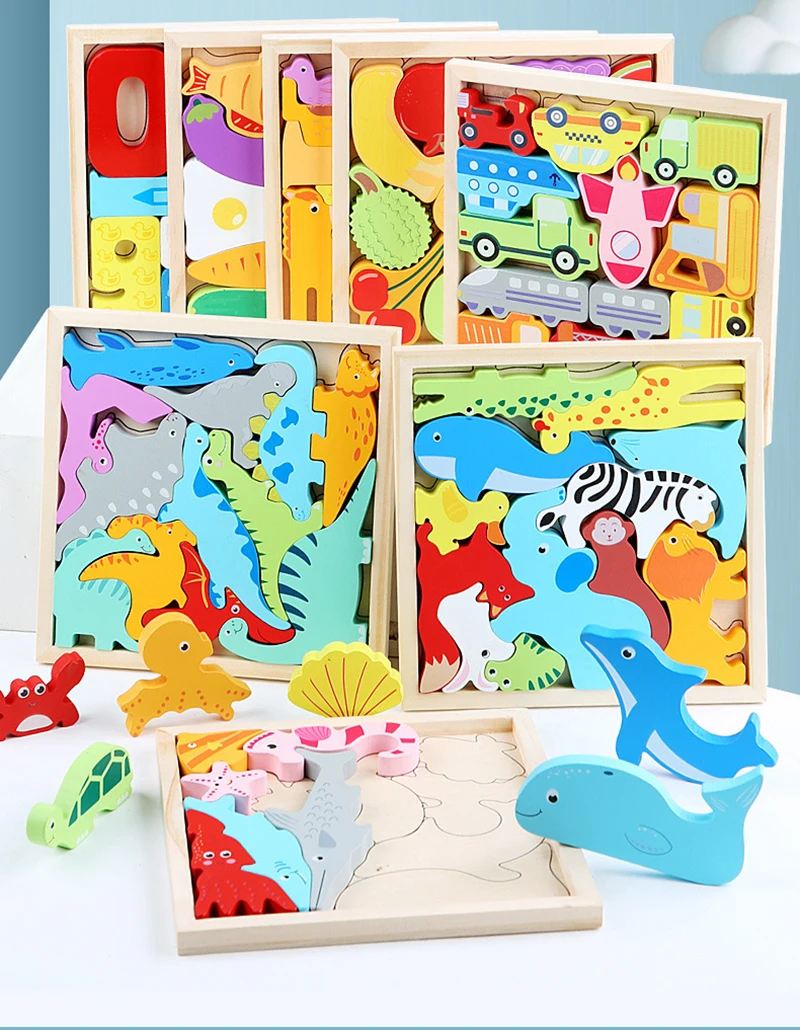 3D Деревянный динозавр, животные, фрукты, мультфильм, головоломка Монтессори, образовательная, Когнитивная игра, Детская образовательная забавная игрушка, подарок