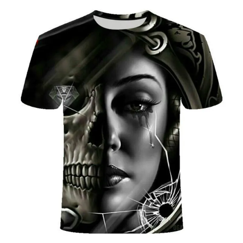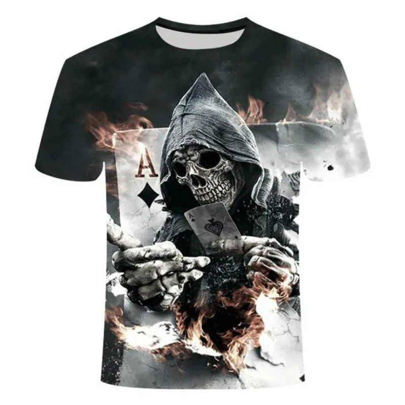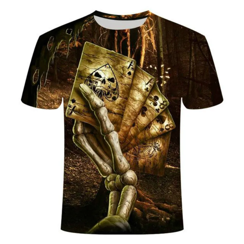 Новинка 2021, интересная Мужская футболка с 3d-черепом и покером, лидер продаж, брендовая Повседневная футболка с 3D-принтом, летняя футболка азиатского размера