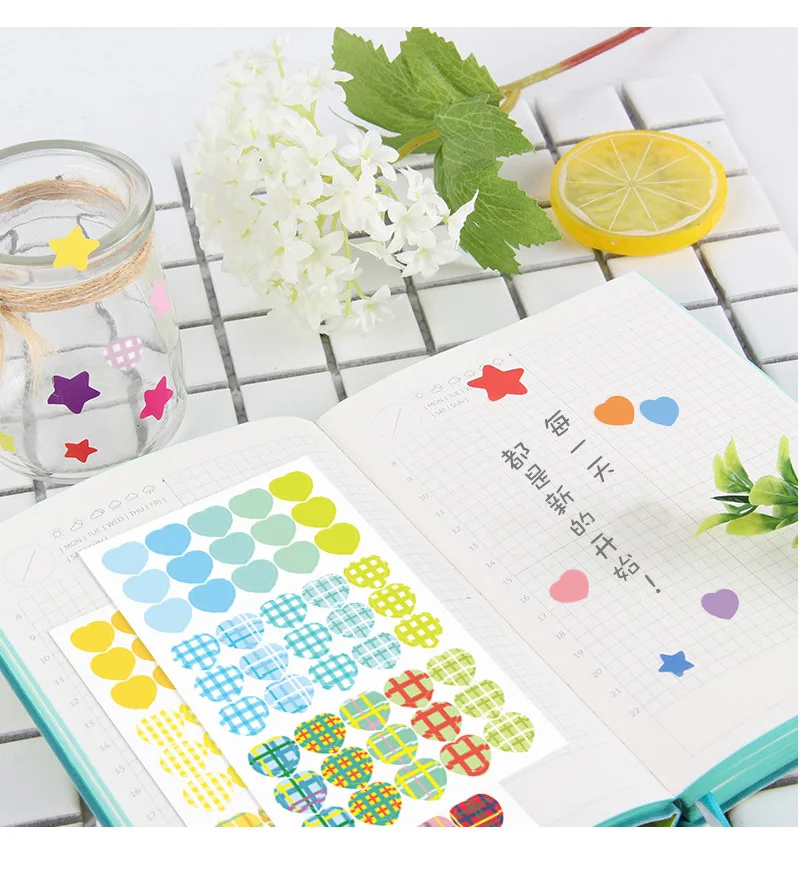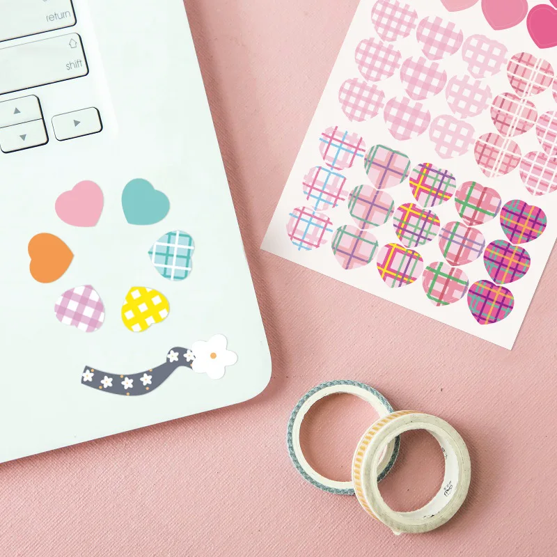 Цветные наклейки в форме сердца в Корейском стиле, стикеры для ежедневника, блокнота, украшения в виде сетки, канцелярские принадлежности альбом для вырезок