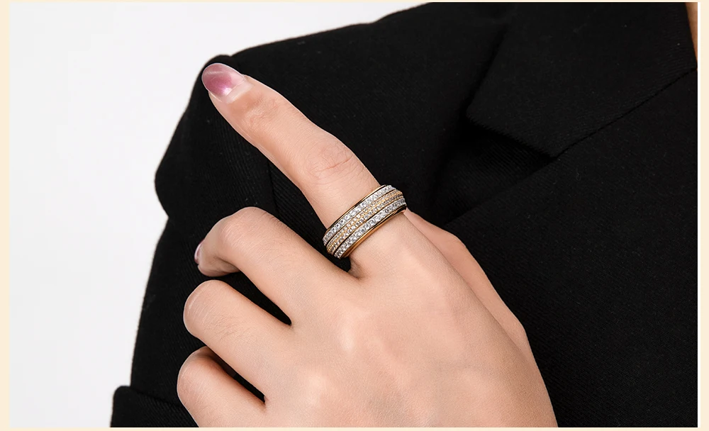 Кольцо женское многослойное из нержавеющей стали золотого цвета