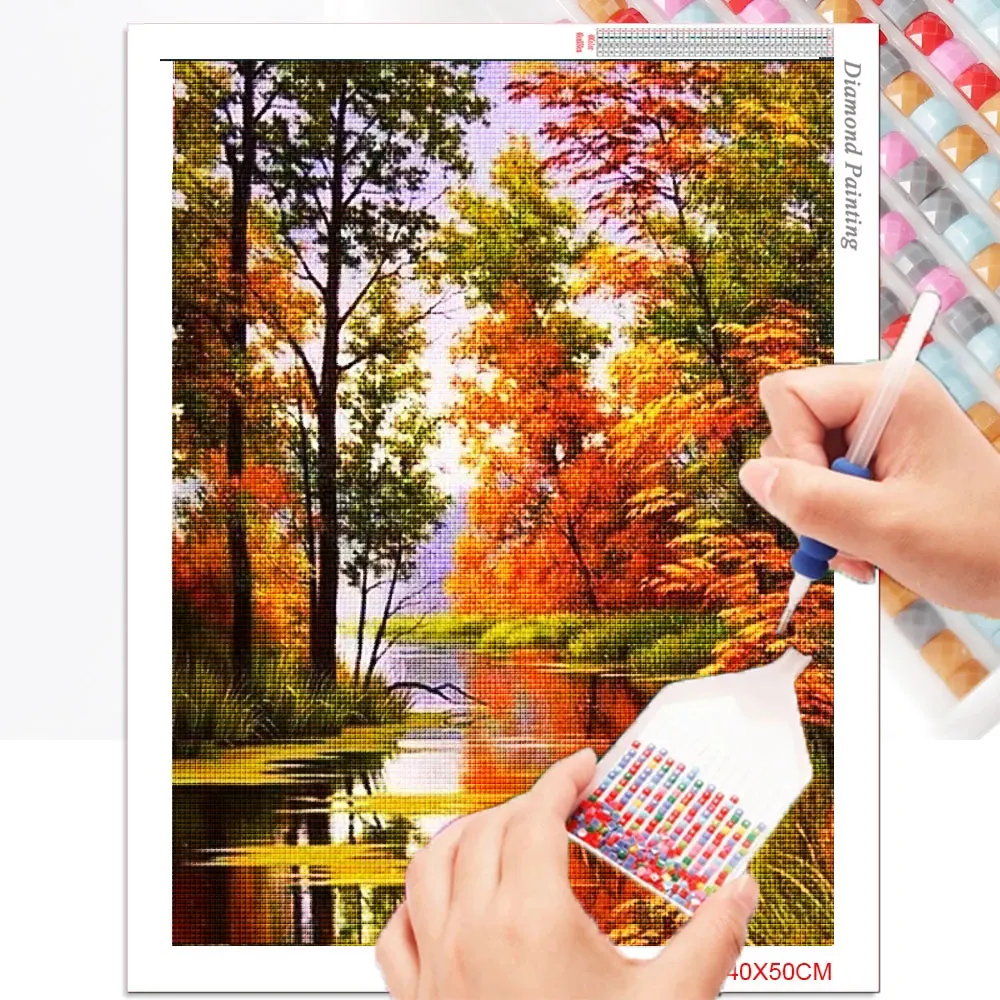 *Площадь сверла:Полный квадратный/круглый Алмаз Мозаика дерево Пейзаж