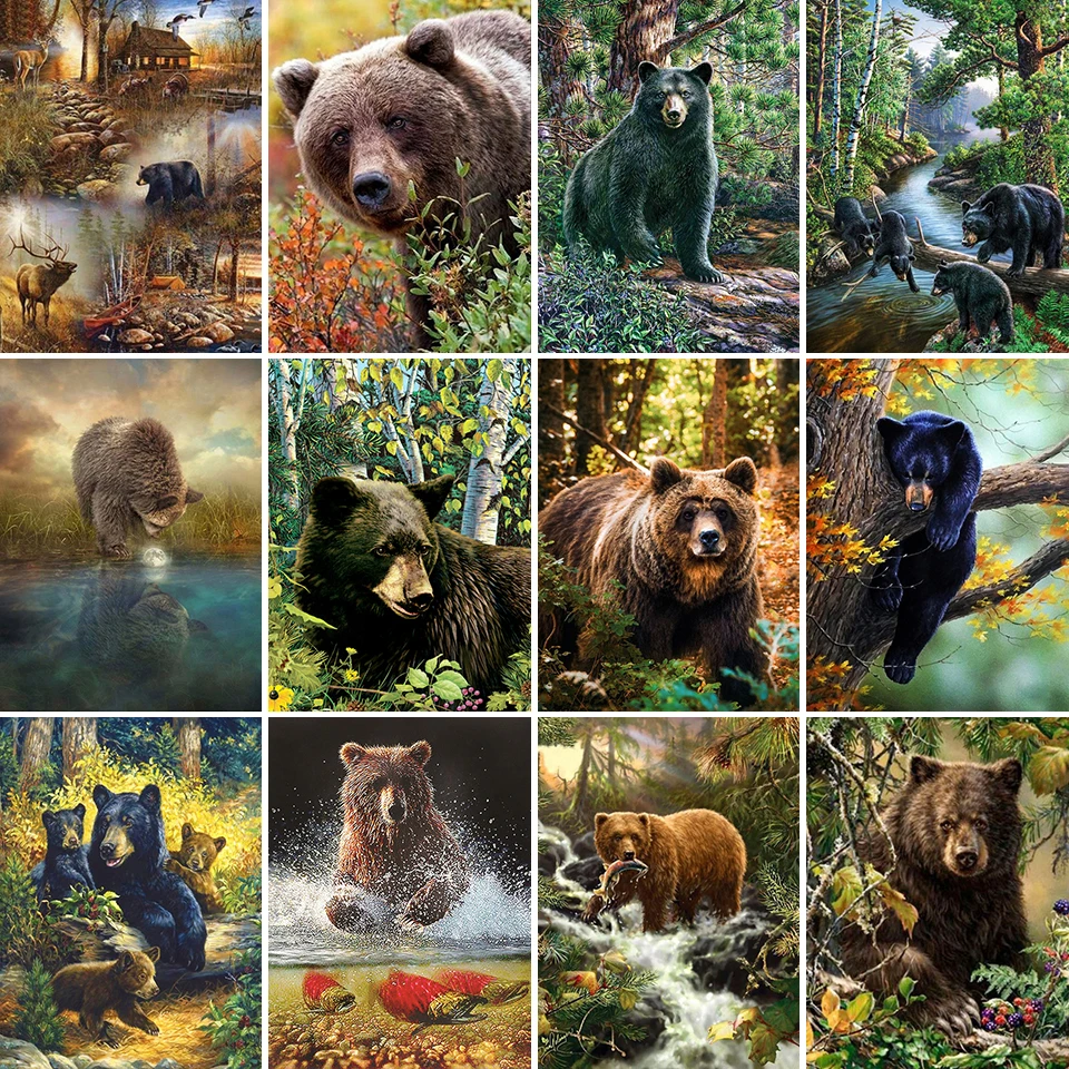 Алмазная 5D картина сделай сам, Набор для вышивки крестиком с изображением медведя, мозаика для творчества, стразы, Декор