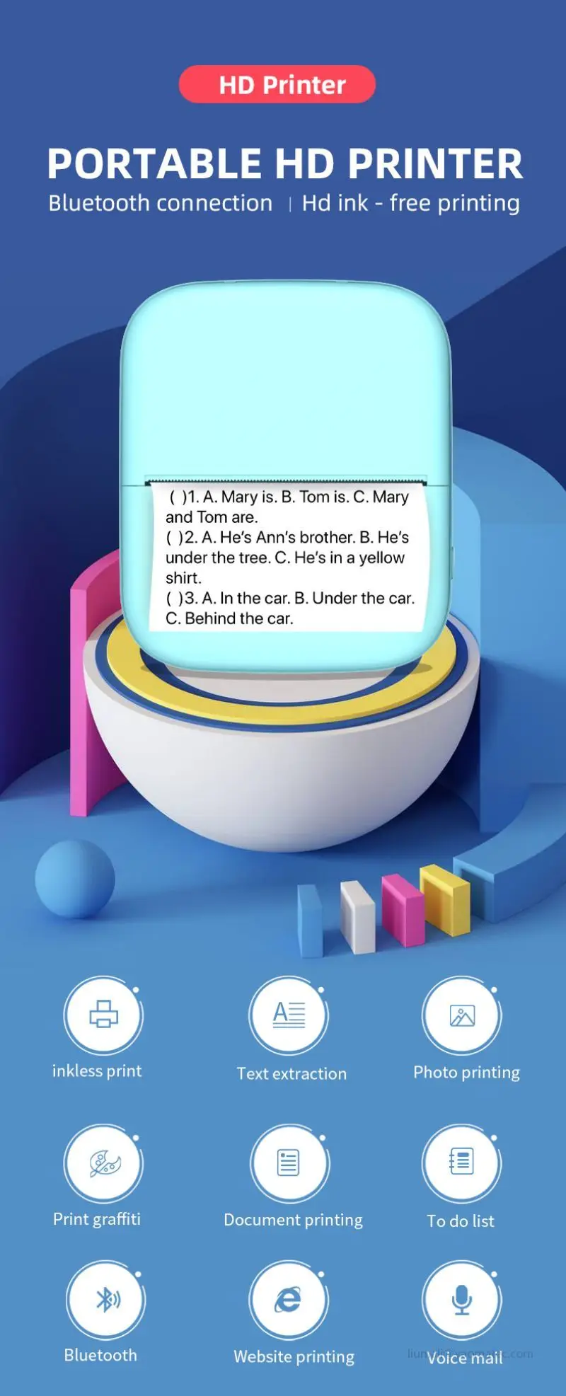 80 мм Карманный термопринтер Беспроводная портативная карманная фотоэтикетка Памятка Студенческая поиск неправильный вопрос печать 300DPI