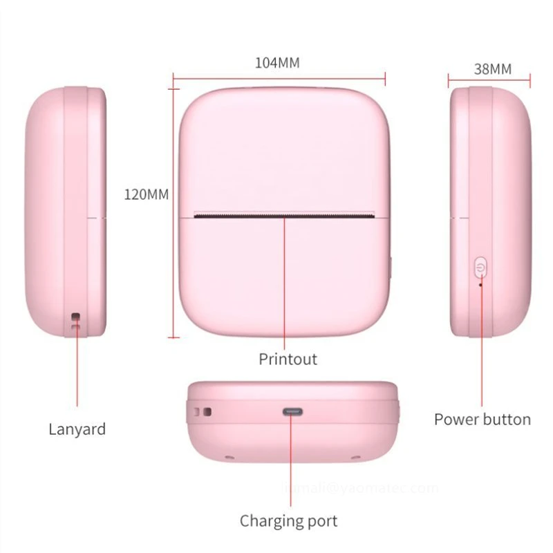 Параметры печати: 300DPI.Характеристики печати: термопечать черного и белого цветовПараметры батареи: 1000 мАч литиевая батарея, type-C зарядкаДругие конфигурации: загрузка приложений/Поддержка мобильных телефонов, планшетов,Заводская Стандартная конфигурация: Хост + Дата-кабель + руководство + 1 рулон печатной бумаги + Внешняя упаковкаПараметры Bluetooth: Bluetooth link (поддержка 2,0, 3,0, 4,0, 5,0 спецификации)Размер изделия: 104*120*38 ммВес нетто продукта: 216 гХарактеристики расходного материала: 80*30 ммЯзыковые характеристики: поддержка китайского, английского,Цвет: синий/розовый