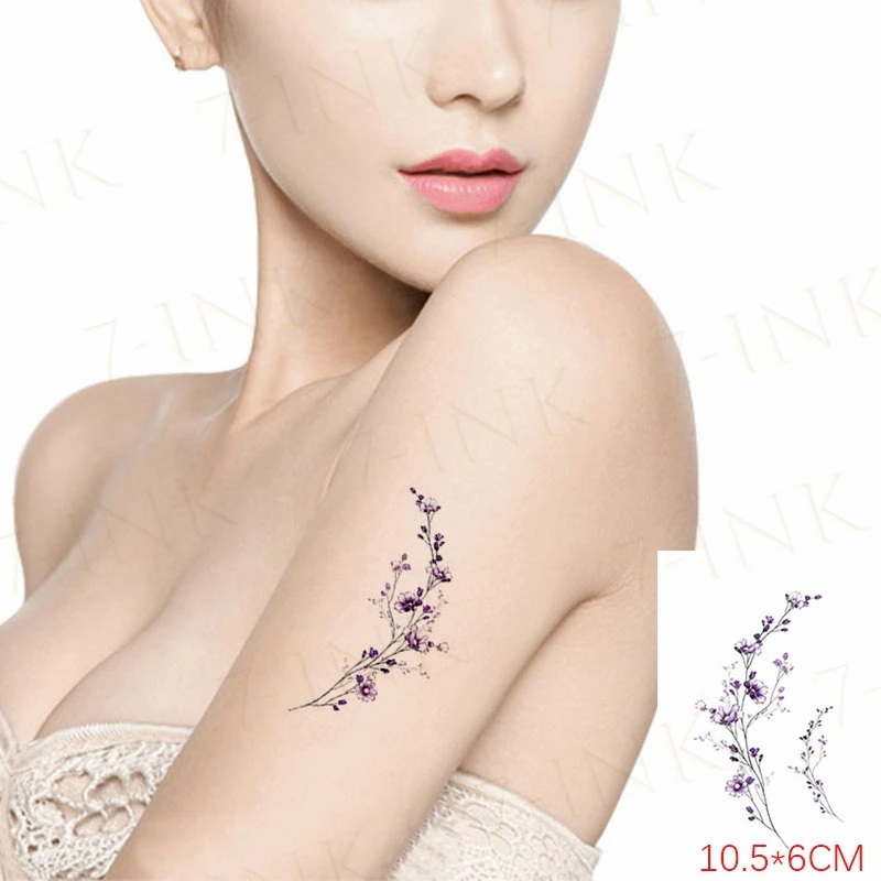 Водостойкая Временная тату-наклейка, сексуальный фиолетовый цветок, ветка для боди-арта, макияж, флэш-тату для мужчин, женщин и мужчин