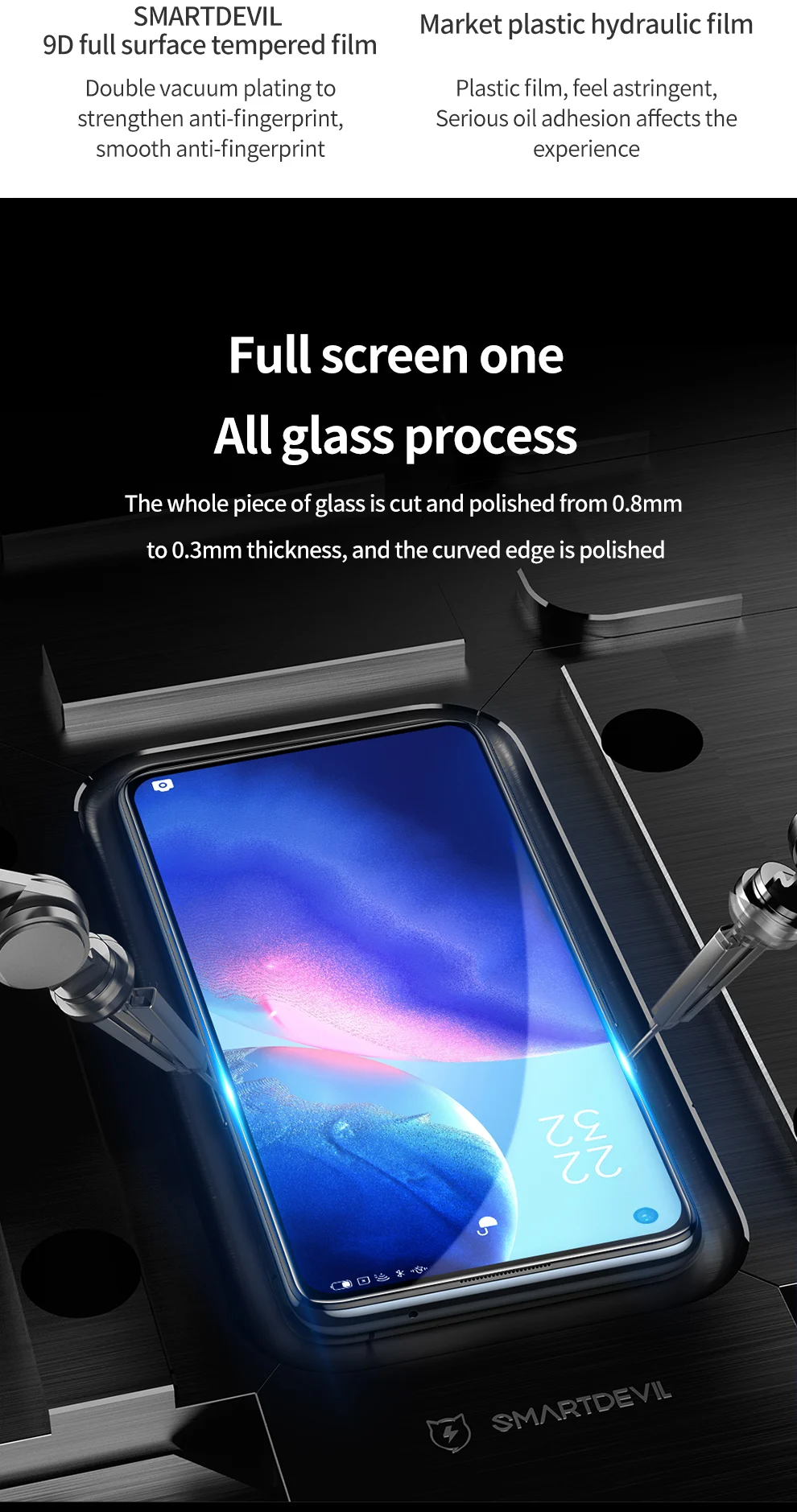 Технология 9D с круглыми краями делает край более гладким и менее сломающимся. Он изготовлен из закаленного стекла твердости 9H, который является суперпрочным и защищает экран телефона от царапин и повседневной носки. 9D полный дизайн покрытия, более совершенная защита для мобильных телефонов