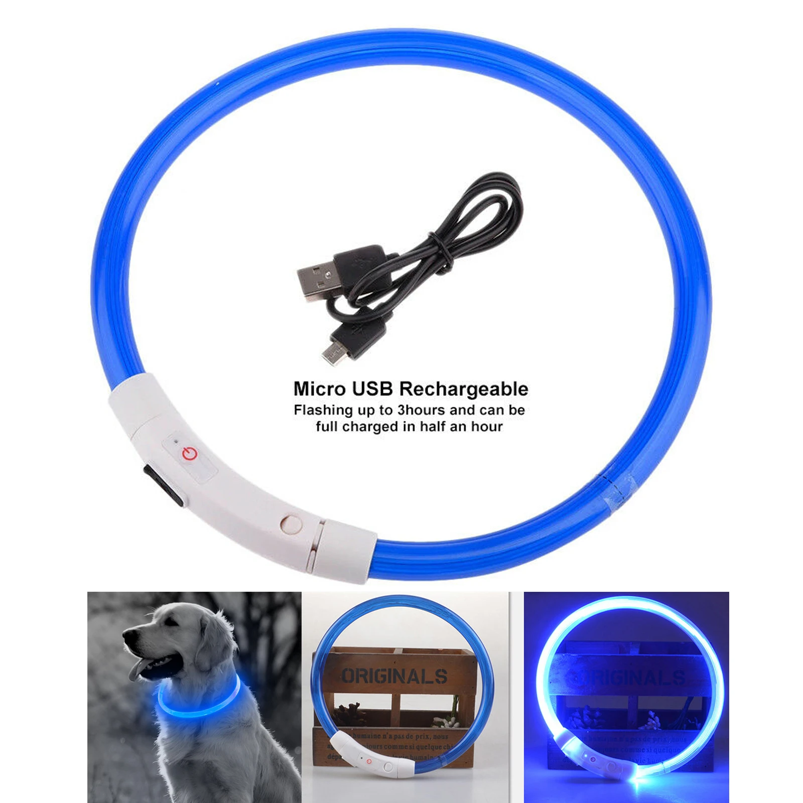 Светящийся ошейник для собак, перезаряжаемый через USB, разрезаемое светодиодное светящееся ночное защитное ошейник для маленьких и больших питомцев, собак и щенков