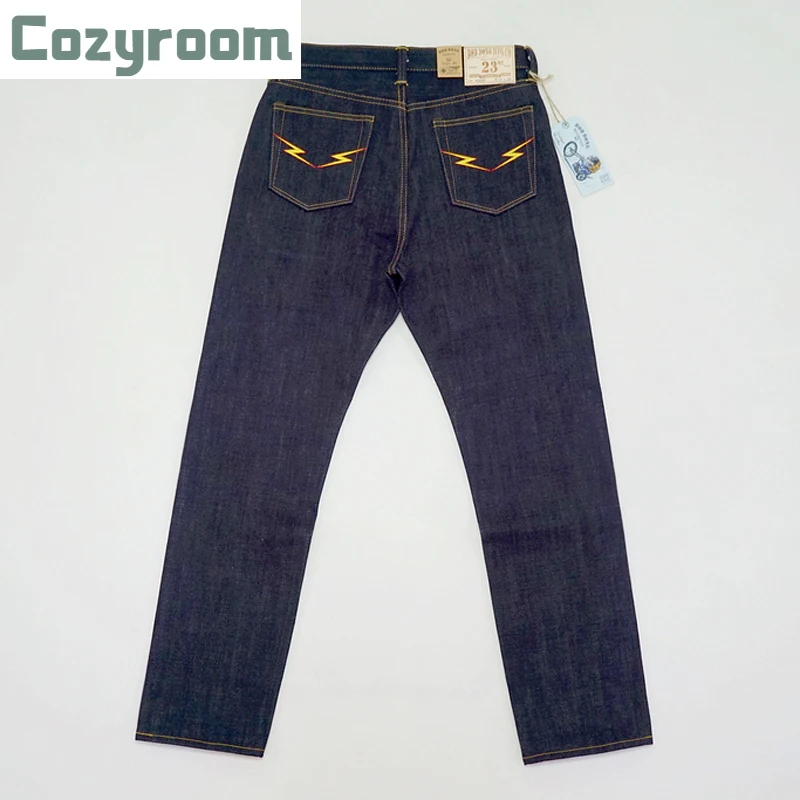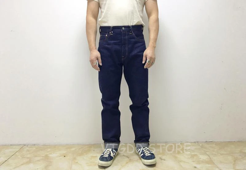 Ткань: 23 унции необработанной джинсовой ткани Тип: на основе Lev1s 66501, обычная посадка (слегка конусная) Кожаный чехол на заднюю панель Медные заклепки, включая скрытые задние Карманные Заклепки Степень усадки джинсов при стирке, пожалуйста, посмотрите наши измерения в таблице размеров ниже