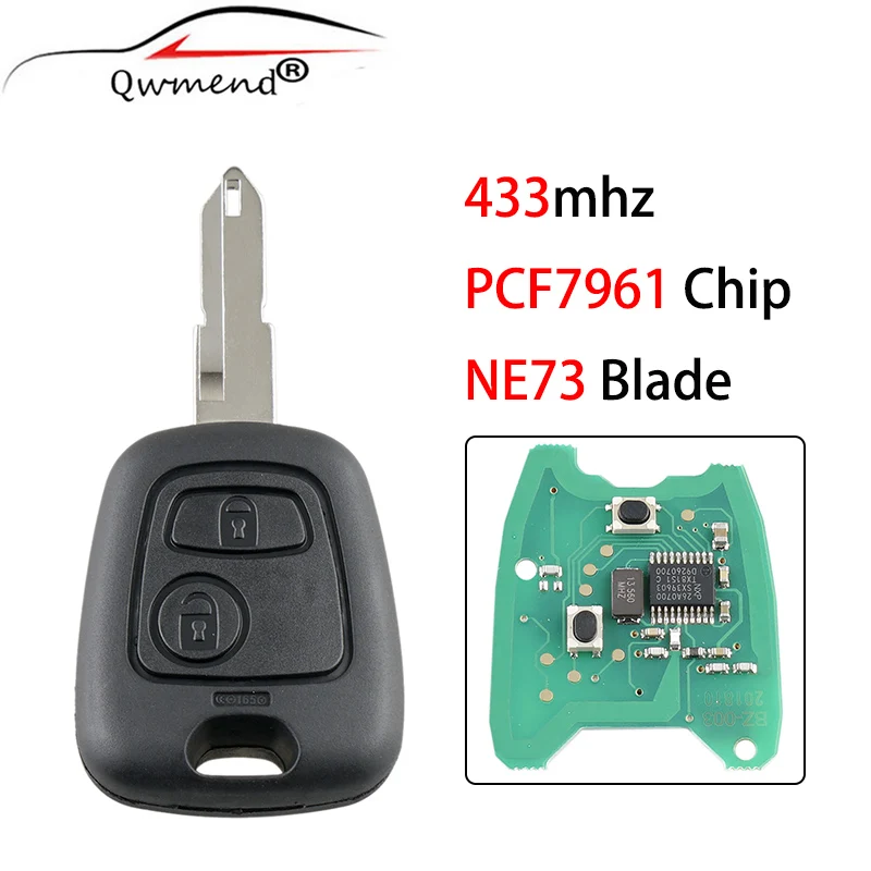Ключ автомобильный, 2 кнопки Автомобильный Брелок дистанционного управления с ключом, для Peugeot 206, 306, 405, NE73, Blade 434 МГц, PCF7961