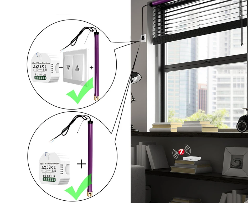 Умный модуль переключателя штор Zigbee + RFИнтеллектуальное управление устройством после подключения его к концентратору Zigbee, концентратор Tuya Zigbee необходим для его гораздо большей совместимости с устройствами zigbee, чем с другими концентраторами.