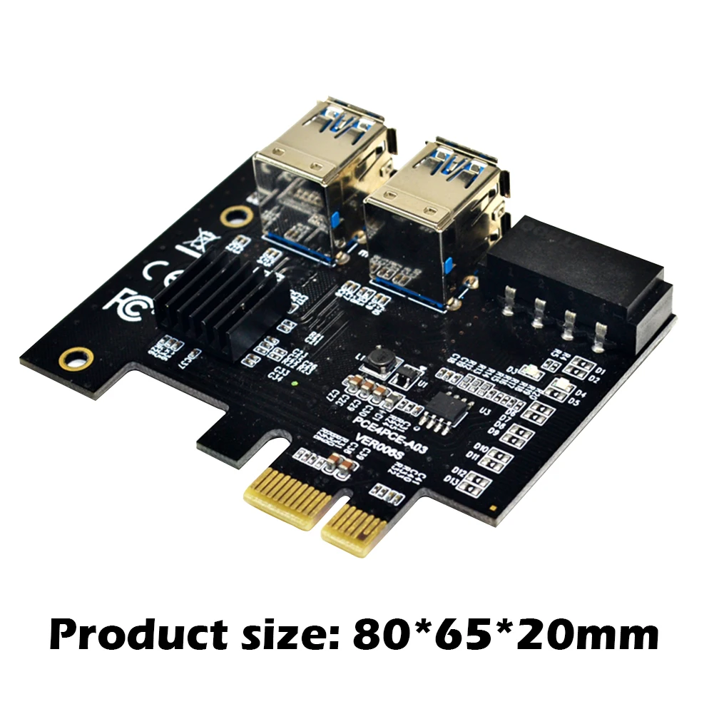 Адаптер PCI-E для PCIe PCI-Express 1x до 16x Майнинг Райзер карта от 1 до 4 USB 3,0 множитель с Molex 4-контактный порт питания для майнера BTCОсобенность:Эффективно решает проблему недостаточного количества интерфейсов PCI-E на материнской плате, один интерфейс можно расширить до 4.Конструкция подключаемой карты может быть напрямую подключена к интерфейсу материнской платы без удлинительного кабеля и может быть подключена к корпусу, что значительно повышает стабильность и надежность.Основная плата управления использует режим прямого питания интерфейса PCI-E и не требует внешнего шнура питания. Внешние помехи не влияют на основной источник питания управления и обеспечивают более высокую стабильность.Уменьшая Количество адаптеров и перемычек, один провод напрямую подключается к интерфейсу, что эффективно снижает интерфейсные помехи и потерю линии, обеспечивая надежность данных и повышая эффективность работы.Разъем USB позолочен для уменьшения помех между интерфейсами и улучшения целостности данных.Добавлен BIOS, большая совместимость с материнскими платами и видеокартами и низкое энергопотребление.Спецификация:Интерфейс шины: PCI-E X1 (совместим с графическим интерфейсом X4, X8, X16)Количество интерфейсов: PCI-E X1, USB 3,0*4, 4-контактный порт питания molexРазмер продукта: 80*65*20 ммВес продукта: 65 гРазмер упаковки: 125*103*26 ммВес брутто: 80 гПримечание:Возможны небольшие отклонения в размере из-за ручного измерения, различных методов и инструментов измерения.Изображение может не отражать реальный цвет изделия из-за различий светильник щении, угле и мониторах.